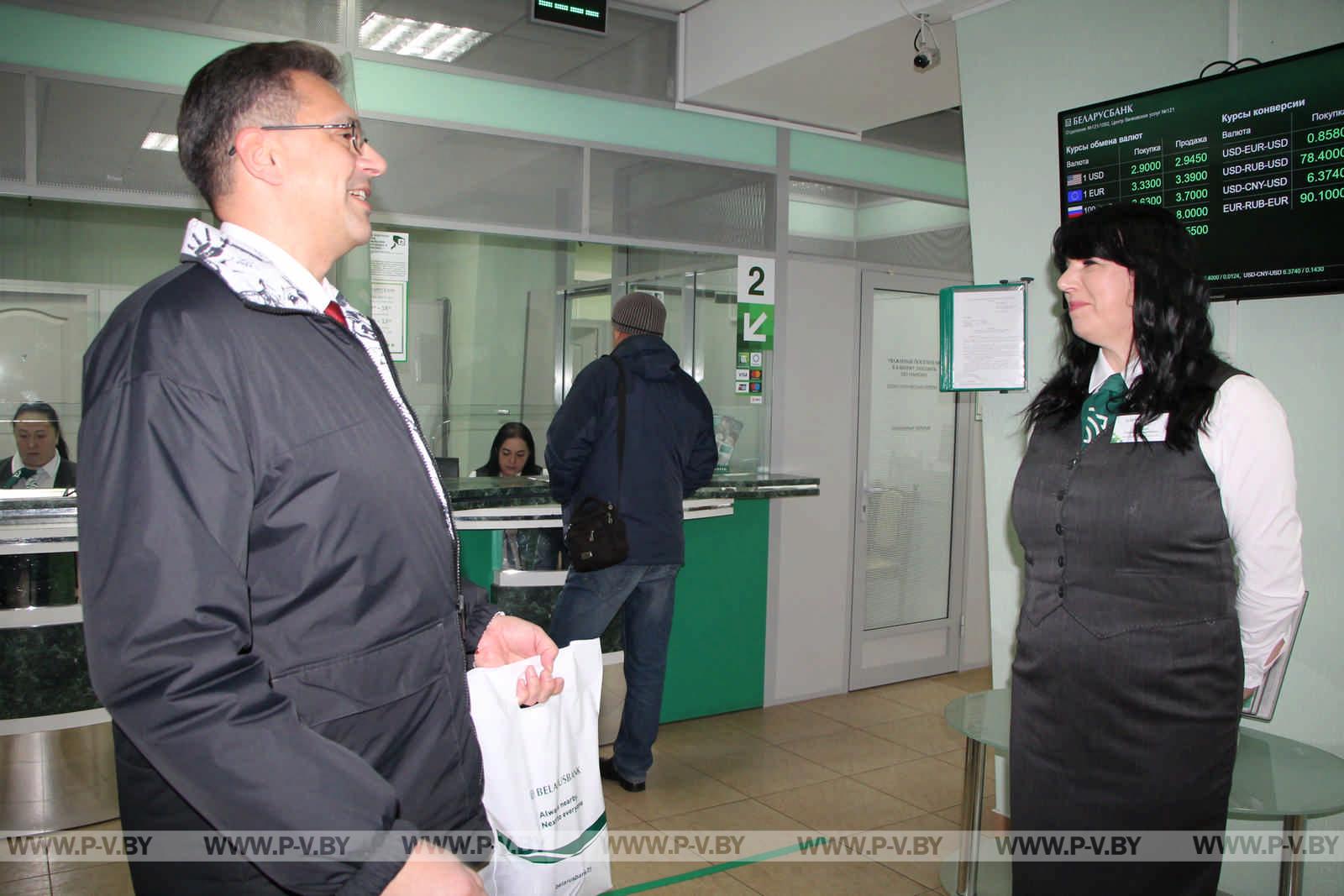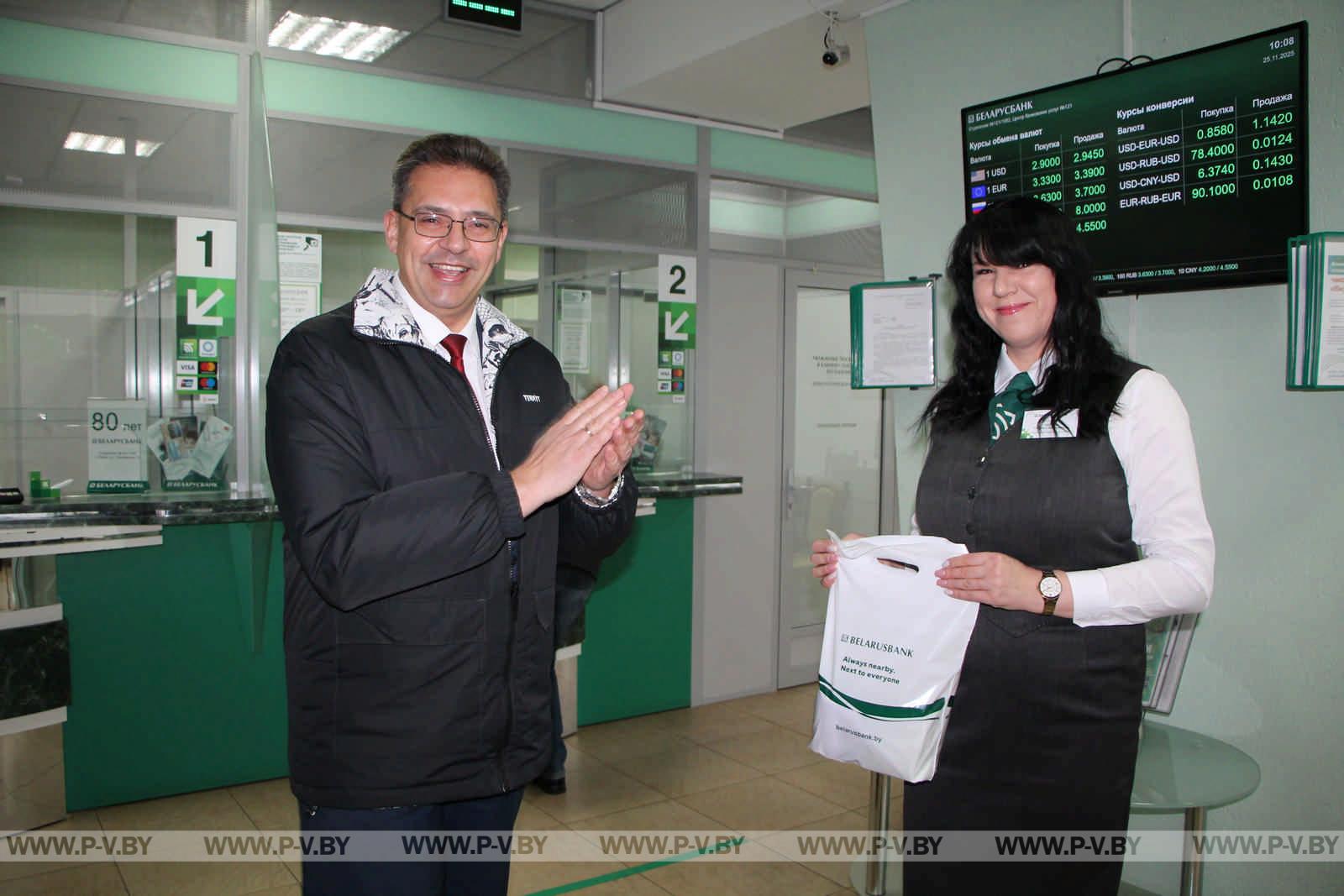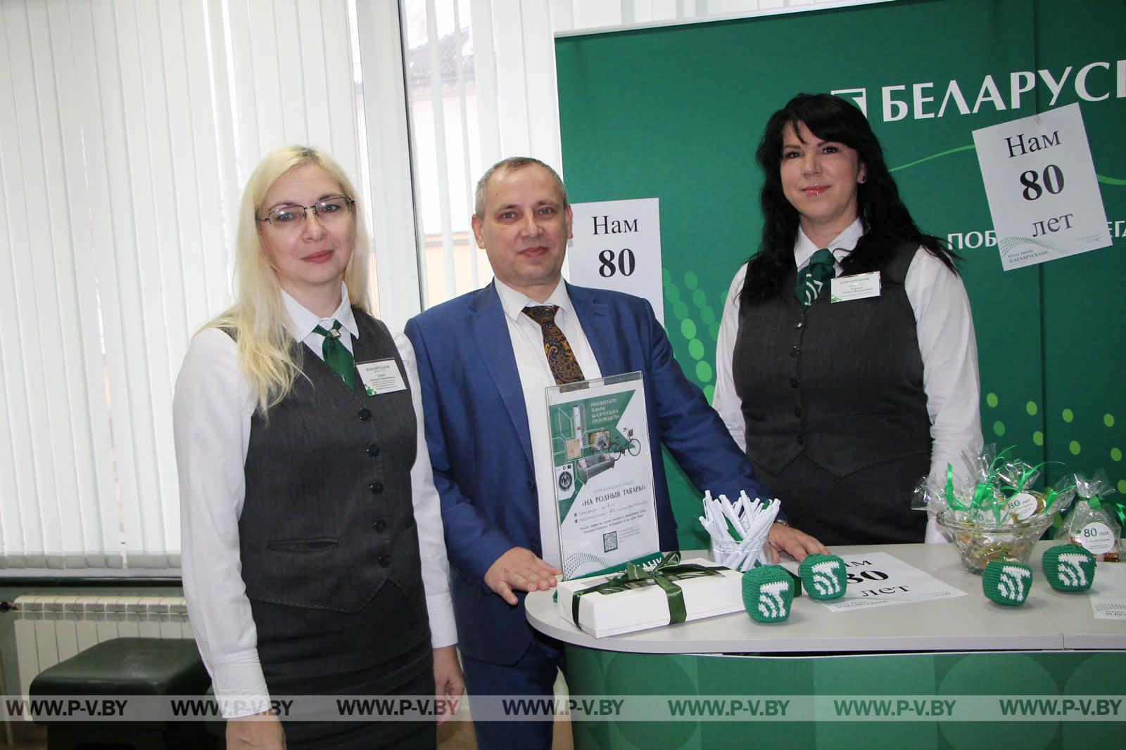 Отделение «Беларусбанка» на улице Ольховских отмечает свое 80-летие. Оно первым было открыто в нашем городе. С юбилеем коллектив и посетителей поздравили директор ЦБУ № 121 ОАО «АСБ Беларусбанк» Андрей Хлебус и его заместитель Александр Розумец.