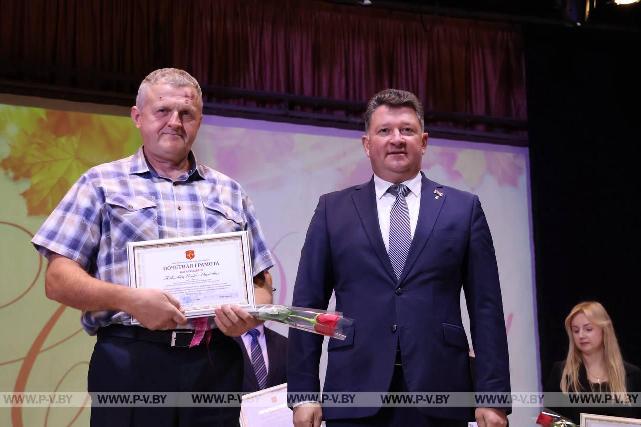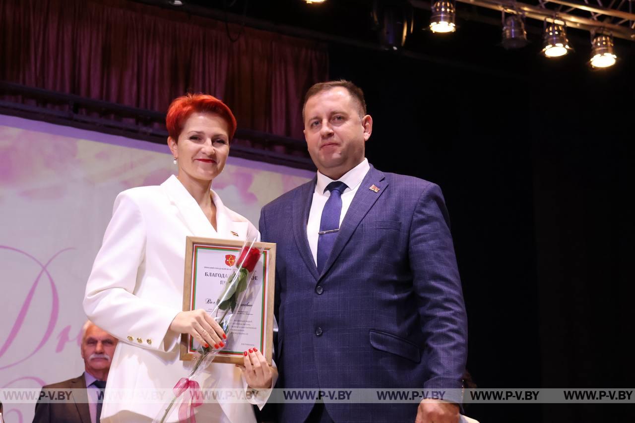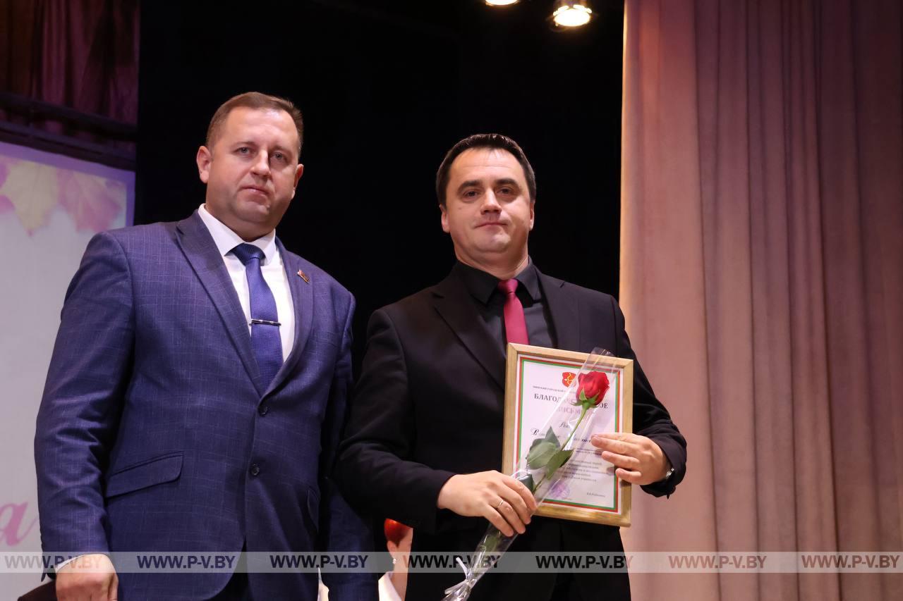 Центральным моментом вечера стало награждение. Десятки педагогов из разных учебных заведений Пинска поднялись на сцену, чтобы получить грамоты, благодарности и другие знаки отличия за свой труд.