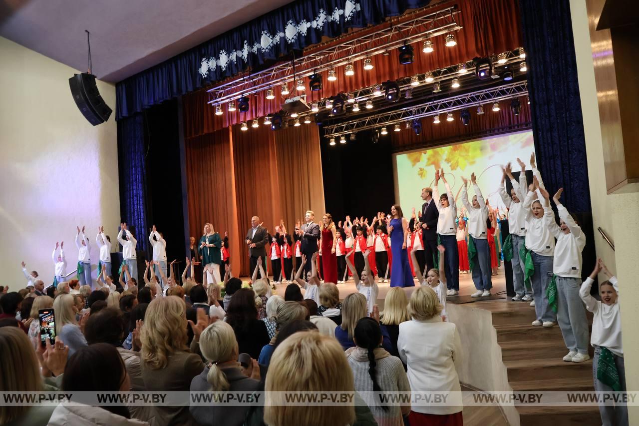 Накануне профессионального праздника в пинском Доме культуры царила особая, праздничная атмосфера. Здесь собрались педагоги со всего города — учителя школ, воспитатели детских садов, мастера производственного обучения из колледжей, чтобы вместе отметить День учителя.