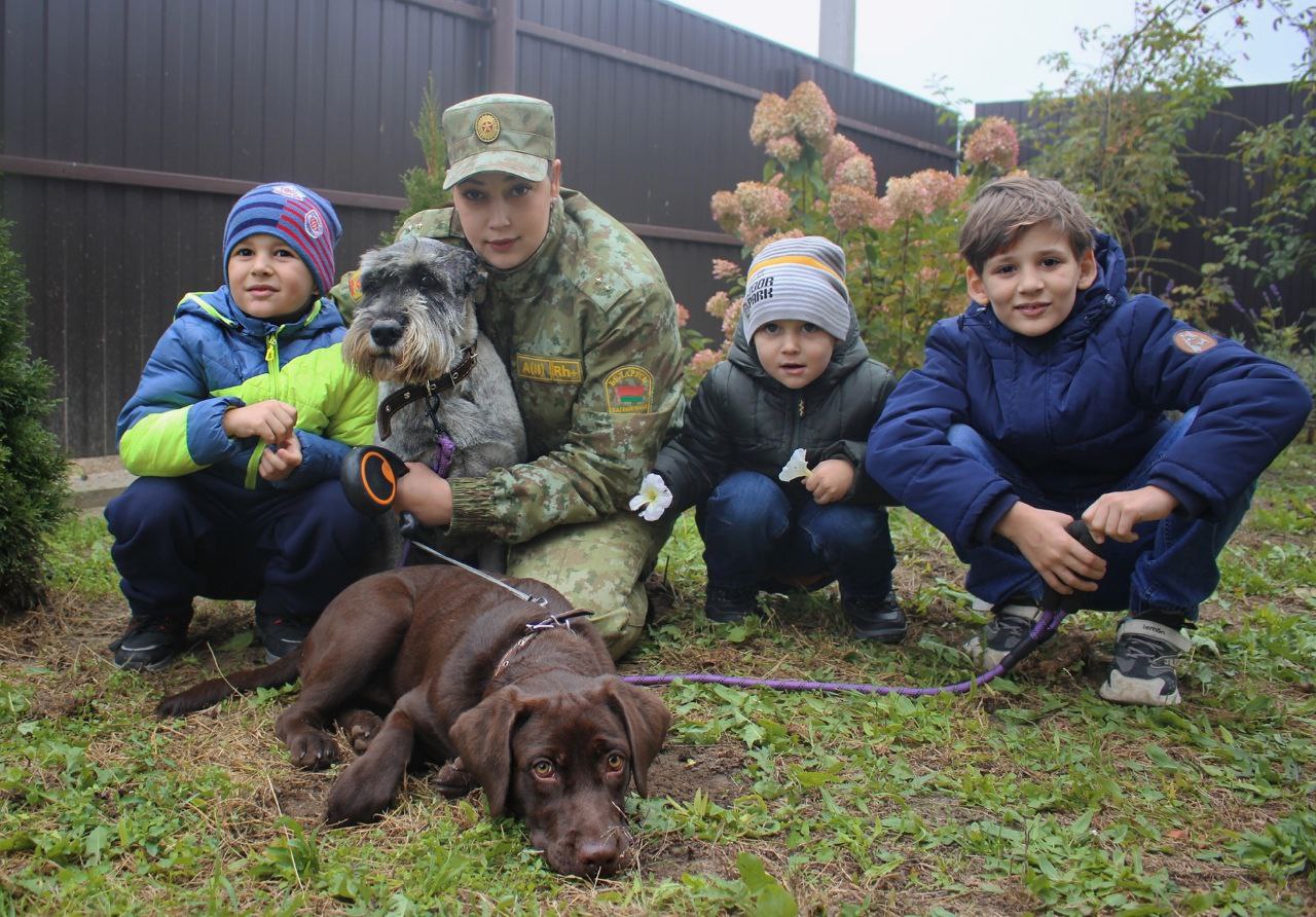 Воспоминания о первом четвероногом напарнике, миттельшнауцере Клевере, всегда вызывают теплую улыбку. Сейчас восьмилетний «дедушка Клевер» уступил часть внимания молодой и энергичной Деметре, лабрадор-ретриверу, но по-прежнему остается важным членом семьи. Помимо службы и заботы о собаках, Сандра Марсиальевна – любящая мама троих сыновей, которые, возможно, продолжат семейную традицию и тоже посвятят себя защите рубежей Родины.