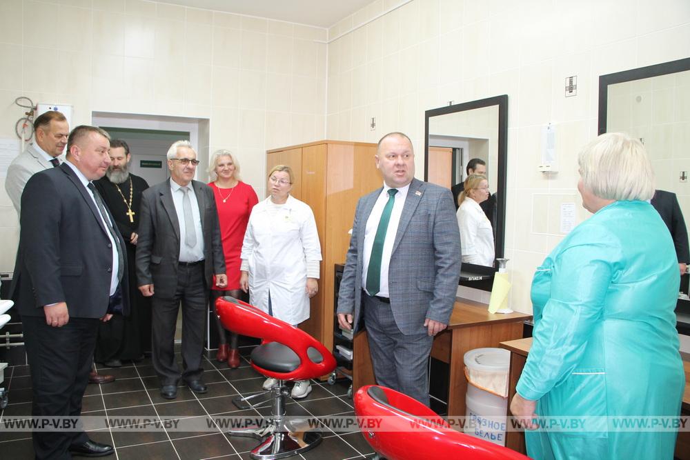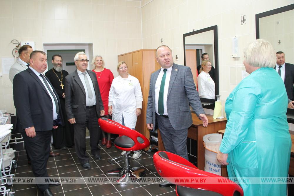 Виктор Рафалович прибыл на Пинщину с приятной миссией. Он передал учреждению подарки от областного УКС – массажное электрическое кресло, пароконвектомат, интерактивный физкультурный комплекс для комнаты ЛФК, аппарат прессотерапии. Оборудование для физиотерапевтического кабинета, швейную машину и оверлок также подарили местные спонсоры – предприниматели Станислав Наривончик, Петр Кречко и Максим Середич. От души всех поблагодарил директор пансионата Яков Иголка, заверив, что все презенты будут служить на благо постояльцев.
