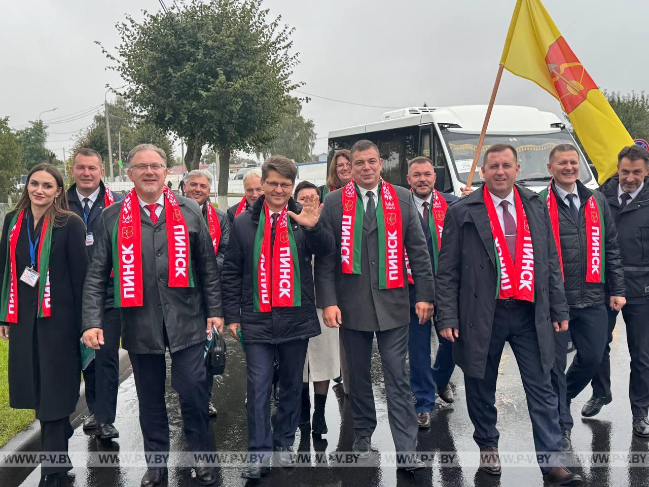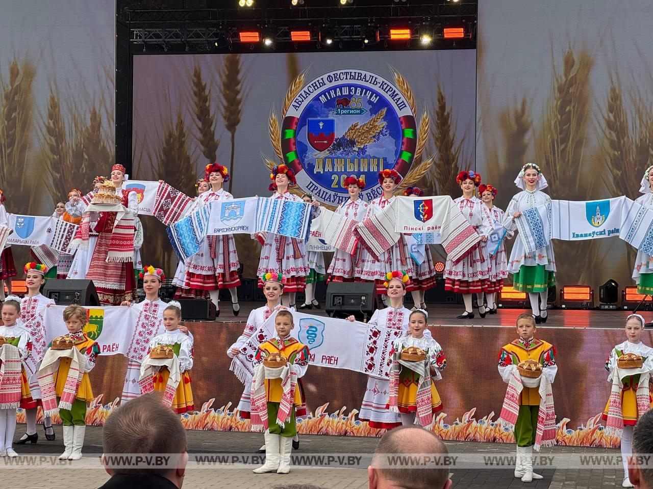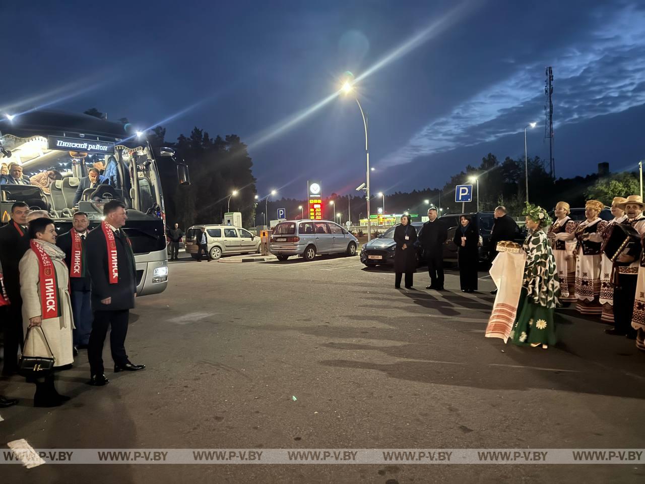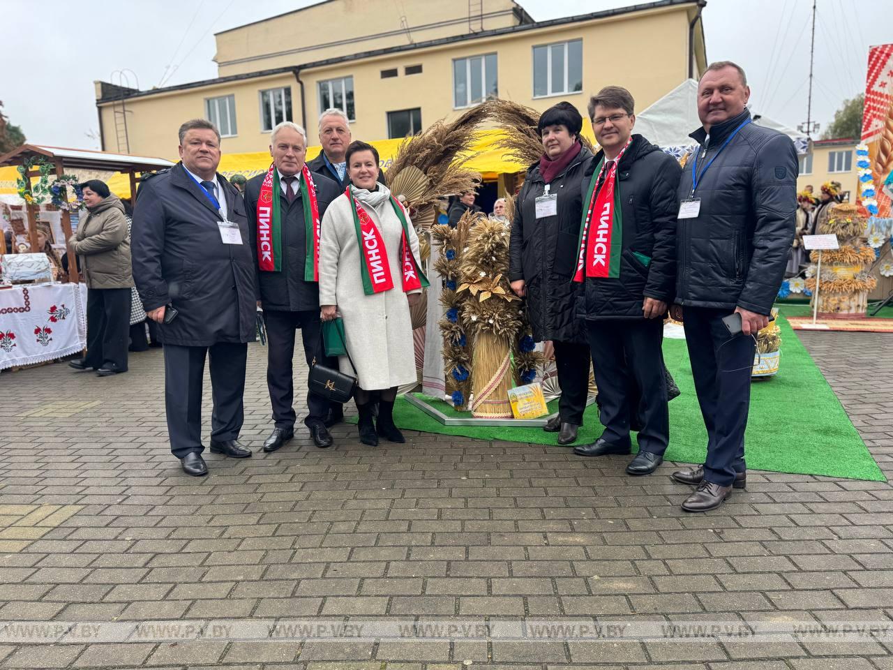 В нынешнем году столицей областного фестиваля-ярмарки стал город энергетиков Белоозерск. Хозяева по традиции караваем хлеба и звонкой песней встретили делегации г. Пинска и Пинского района во главе с председателем городского Совета депутатов Сергеем Куницким, председателями районных исполнительного комитета Сергеем Созончуком и Совета депутатов Вячеславом Лозюком. В их составе – победители областного соревнования.