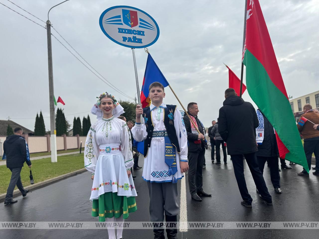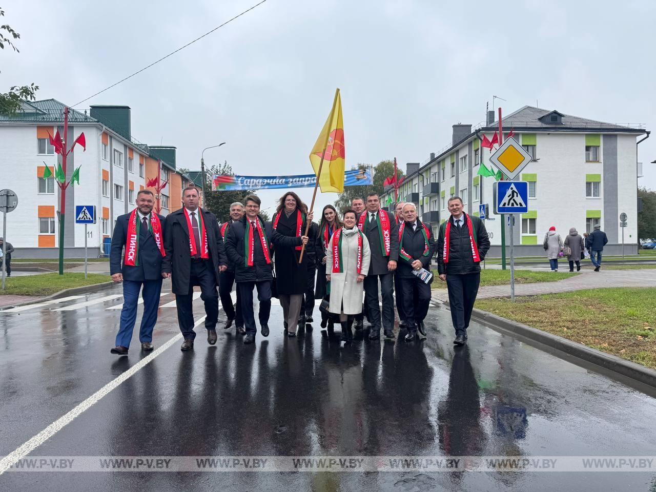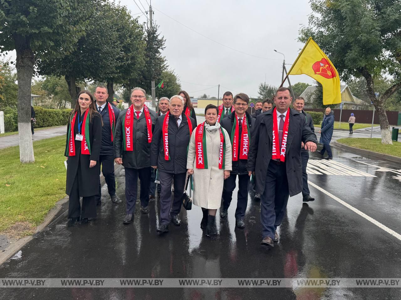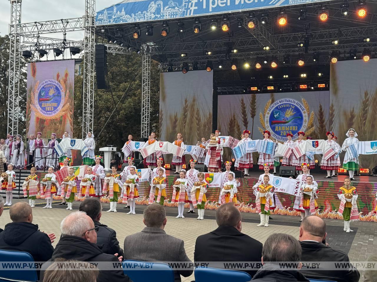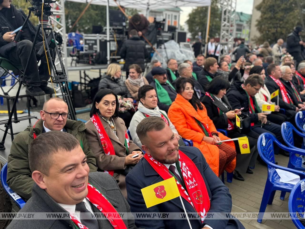 В нынешнем году столицей областного фестиваля-ярмарки стал город энергетиков Белоозерск. Хозяева по традиции караваем хлеба и звонкой песней встретили делегации г. Пинска и Пинского района во главе с председателем городского Совета депутатов Сергеем Куницким, председателями районных исполнительного комитета Сергеем Созончуком и Совета депутатов Вячеславом Лозюком. В их составе – победители областного соревнования.