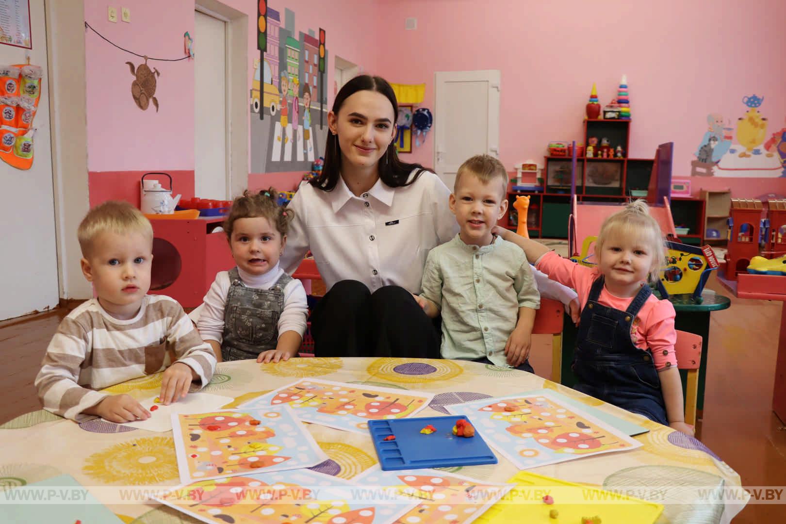 В августе 2023 года молодой специалист тогда еще Дарья Лознюха пришла в дошкольную группу начальной школы пос. Садовый. Встретили ее здесь очень тепло. Кстати, Дарья проходила в учреждении образования педагогическую практику и мечтала вернуться сюда уже в качестве воспитателя. Это и немудрено. Для девушки тут все родное: она сама посещала начальную школу, тут работала и ее бабушка.