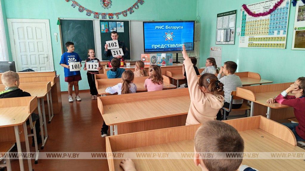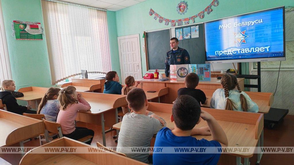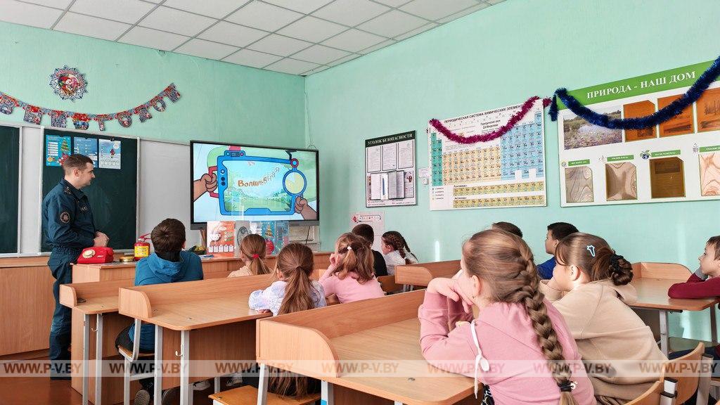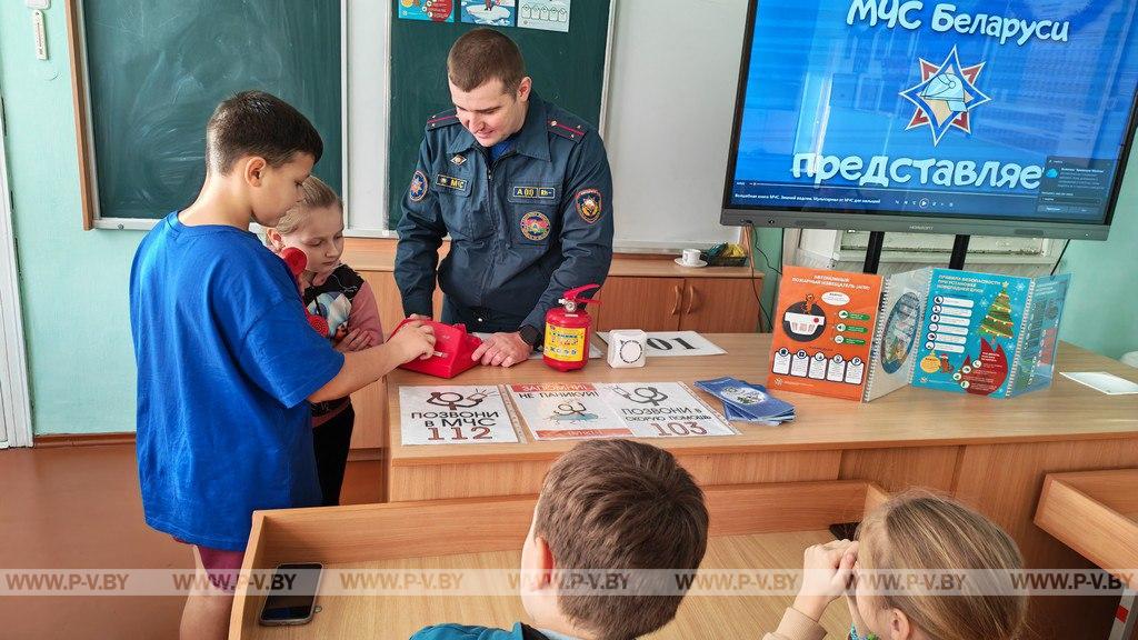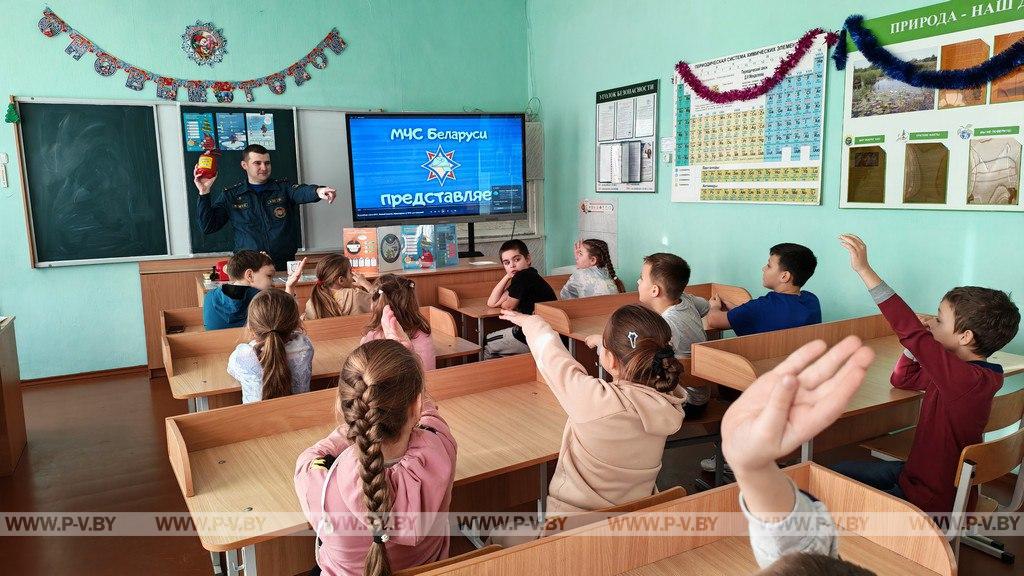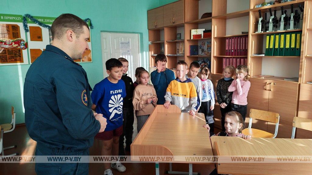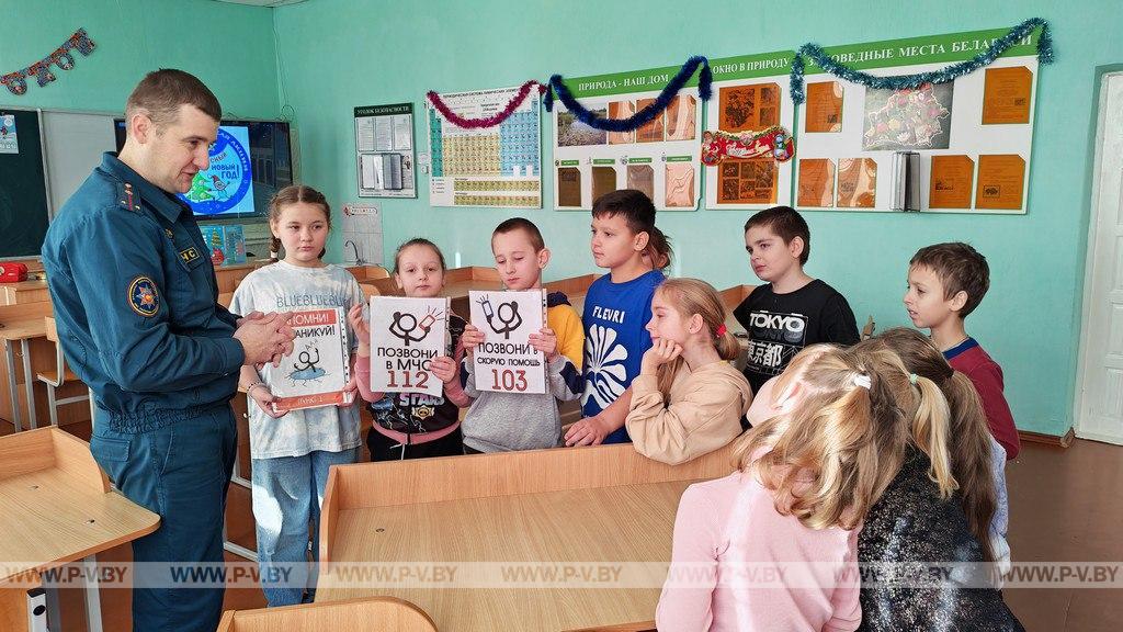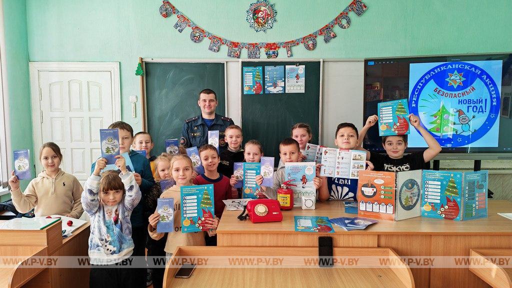 В рамках республиканской акции «Безопасный Новый год!» учащиеся Плещицкой средней школы встретились с инспектором сектора пропаганды и взаимодействия с общественностью Пинского горрайотдела по чрезвычайным ситуациям Максимом Мирощенко.