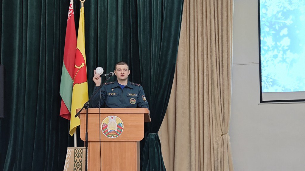 Инспектор сектора пропаганды и взаимодействия с общественностью Пинского горрайотдела по чрезвычайным ситуациям Максим Мирощенко акцентировал внимание на пожарной безопасности. Он подробно разобрал основные риски новогоднего периода: неисправные гирлянды, перегруз электросетей из-за многочисленных праздничных приборов. Спасатель напомнил алгоритм действий в случае пожара и номера экстренных служб «101» и «112». Также инспектор рассказал о важности автономного пожарного извещателя, подчеркнув, что этот небольшой прибор способен своевременно обнаружить задымление и спасти жизни людей.