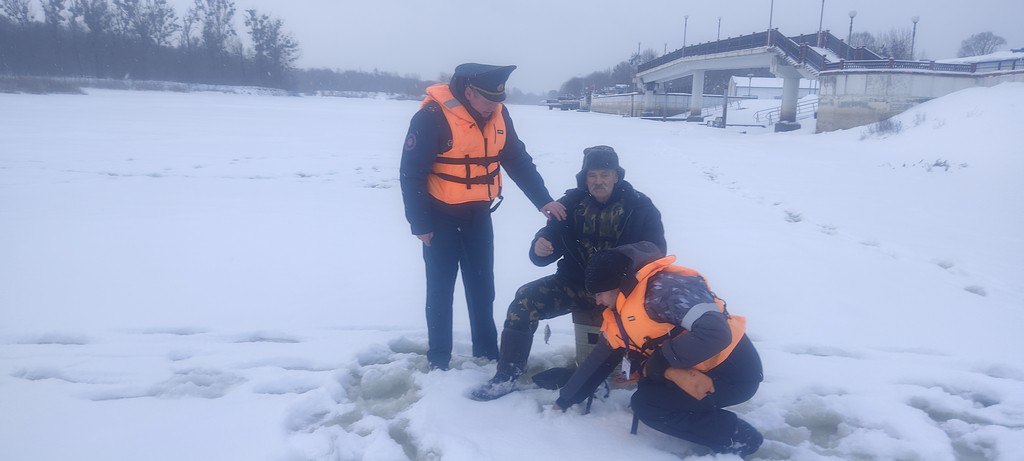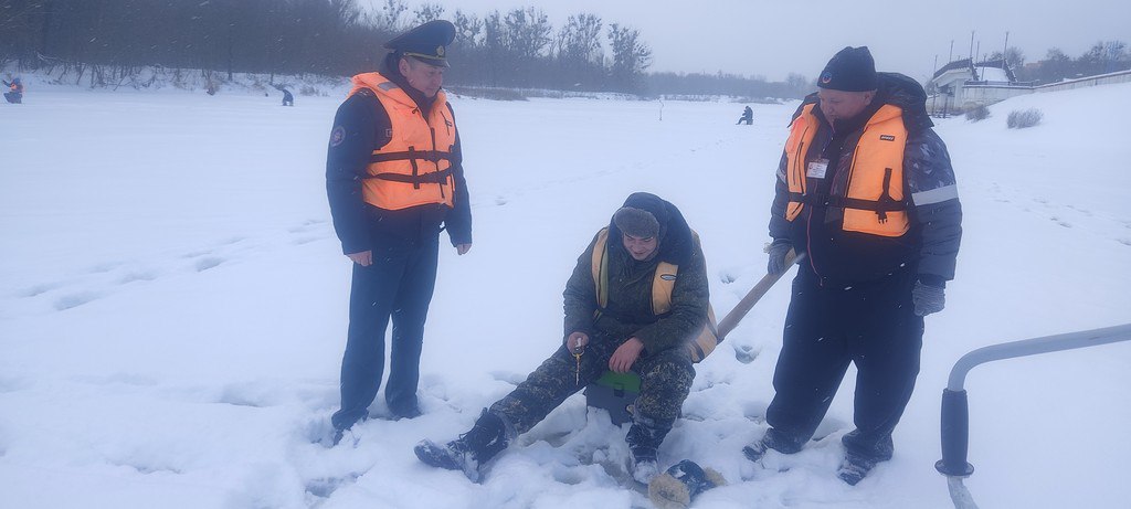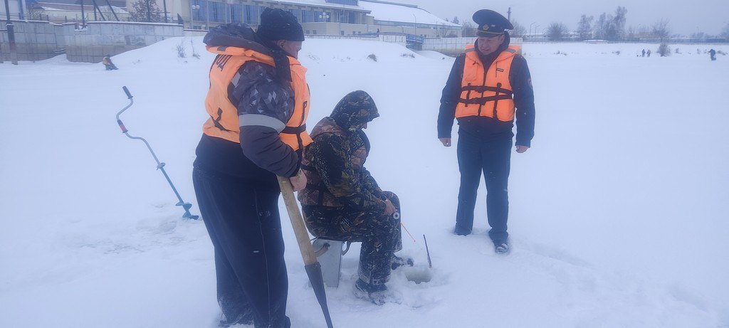 Во время рейдовых мероприятий спасатели напомнили о правилах безопасности нахождения на льду, где он таит опасность и что делать, если лед треснул, а человек провалился и оказался в воде.