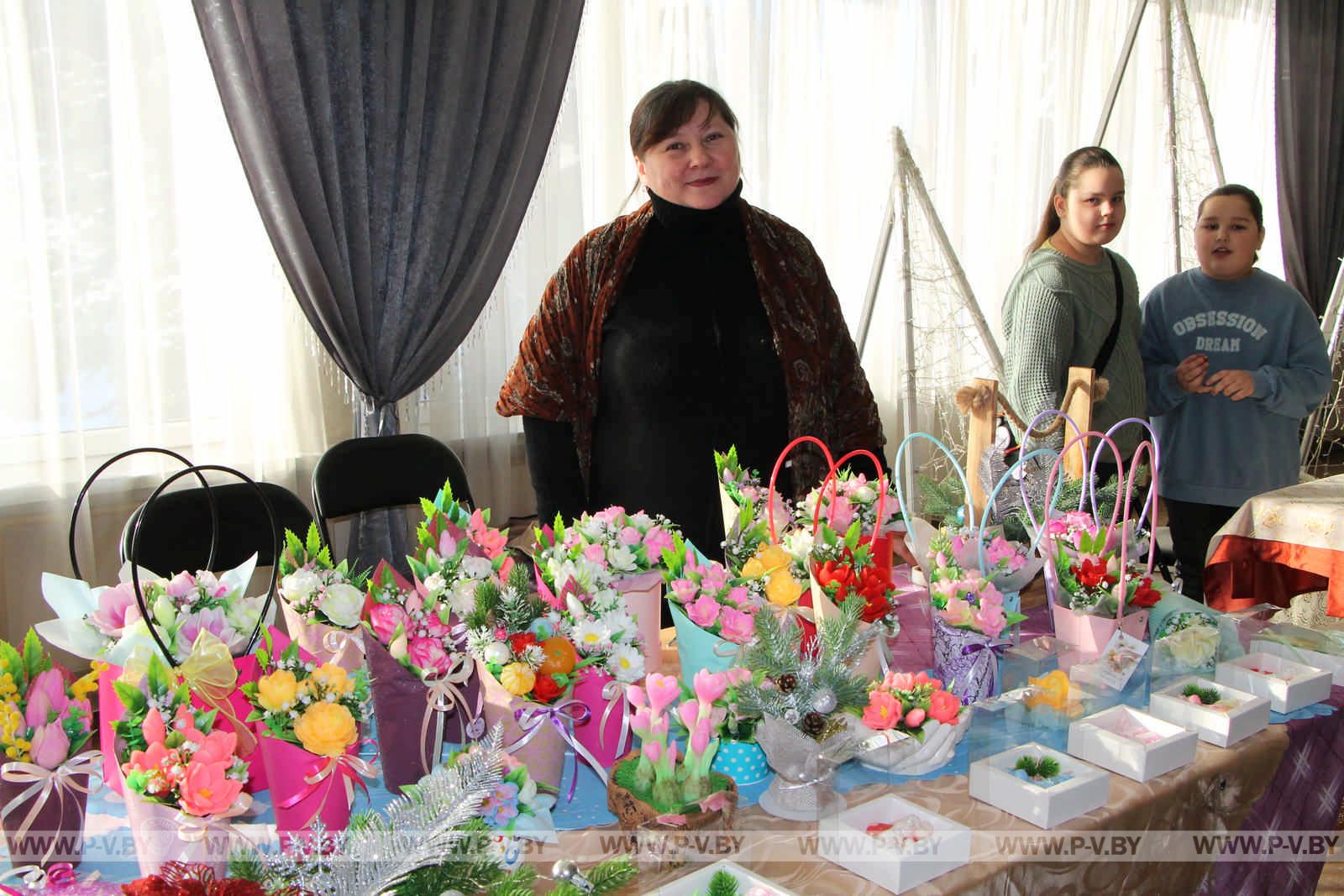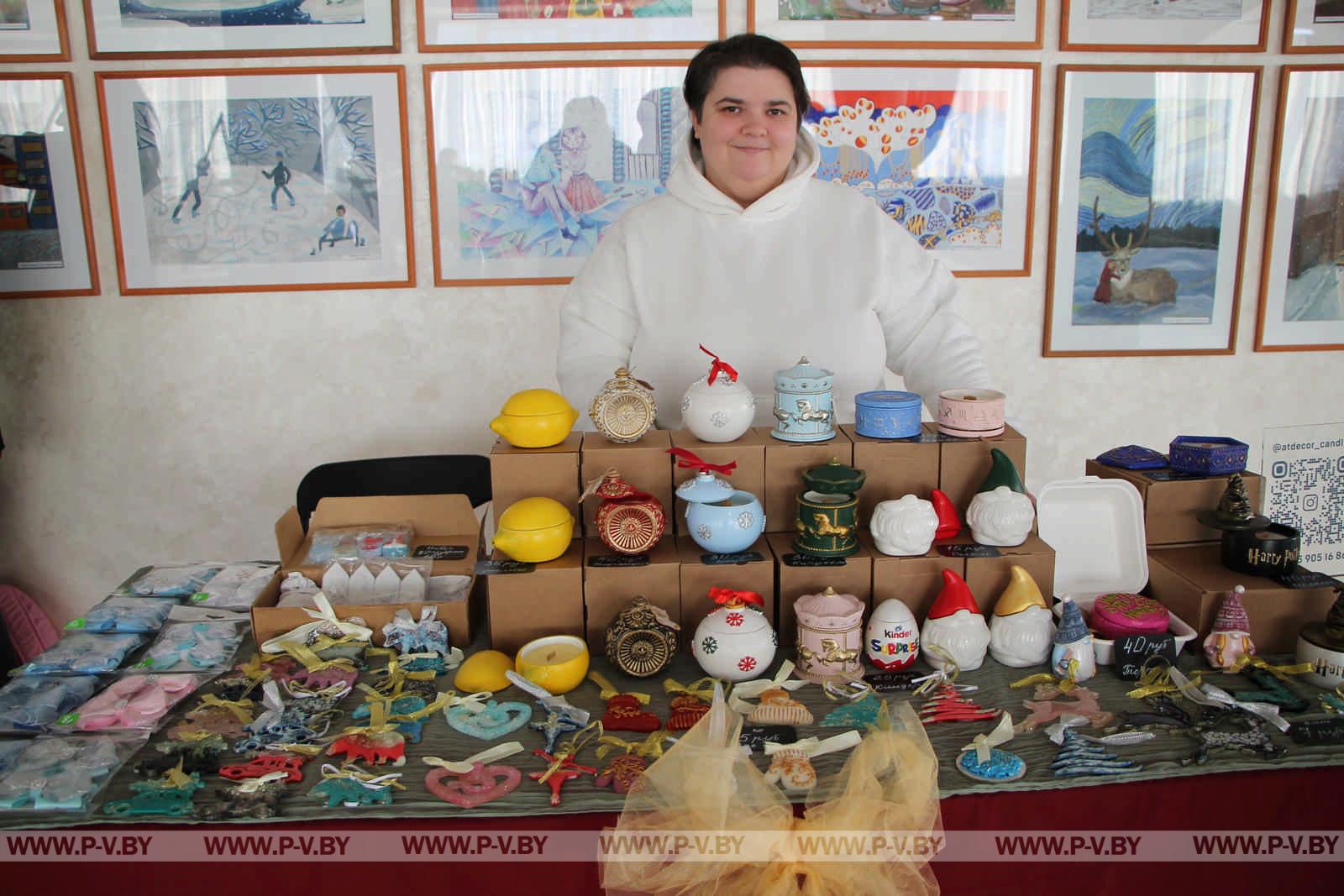 В фойе ГДК разместилась выставка мастеров народного творчества. Здесь можно было приобрести женские украшения, игрушки, мыло, букеты ручной работы и всякие милые безделушки.