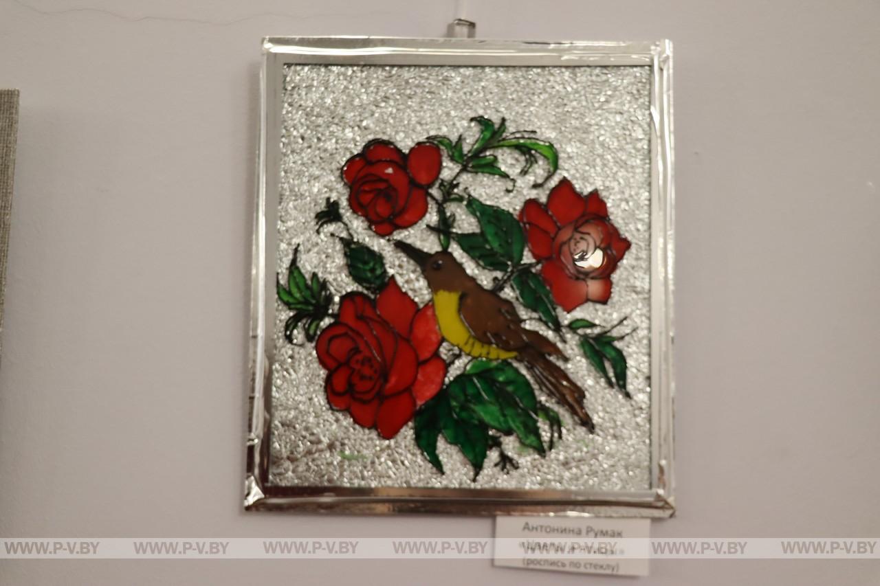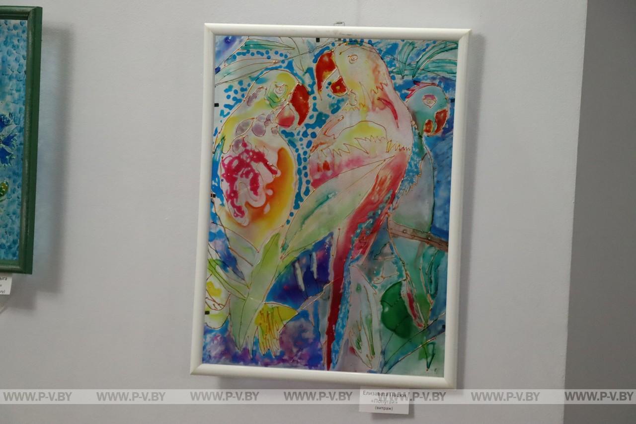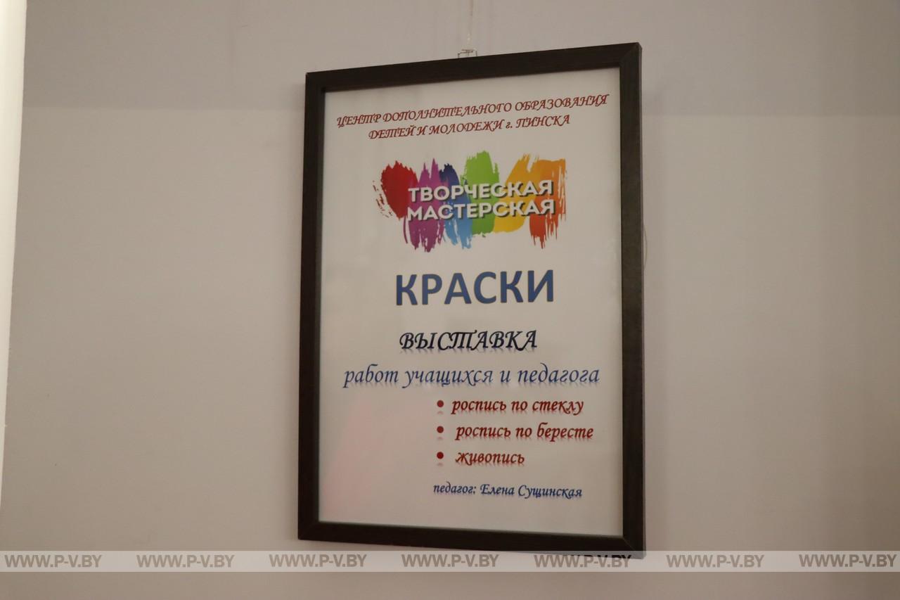 Более 40 работ принадлежат руководителю творческой мастерской «Краски» Центра дополнительного образования детей и молодежи г. Пинска Елене Сущинской и ее юным ученикам. Картины с росписью по бересте выставлены впервые. Основные их темы — природа, виды родного города, архитектурные памятники, цветочные мотивы. Большинство работ — роспись по стеклу с использованием современных материалов, а также традиционная роспись пером и тушью, в основе которой старинная техника, не утратившая популярности и в наши дни.