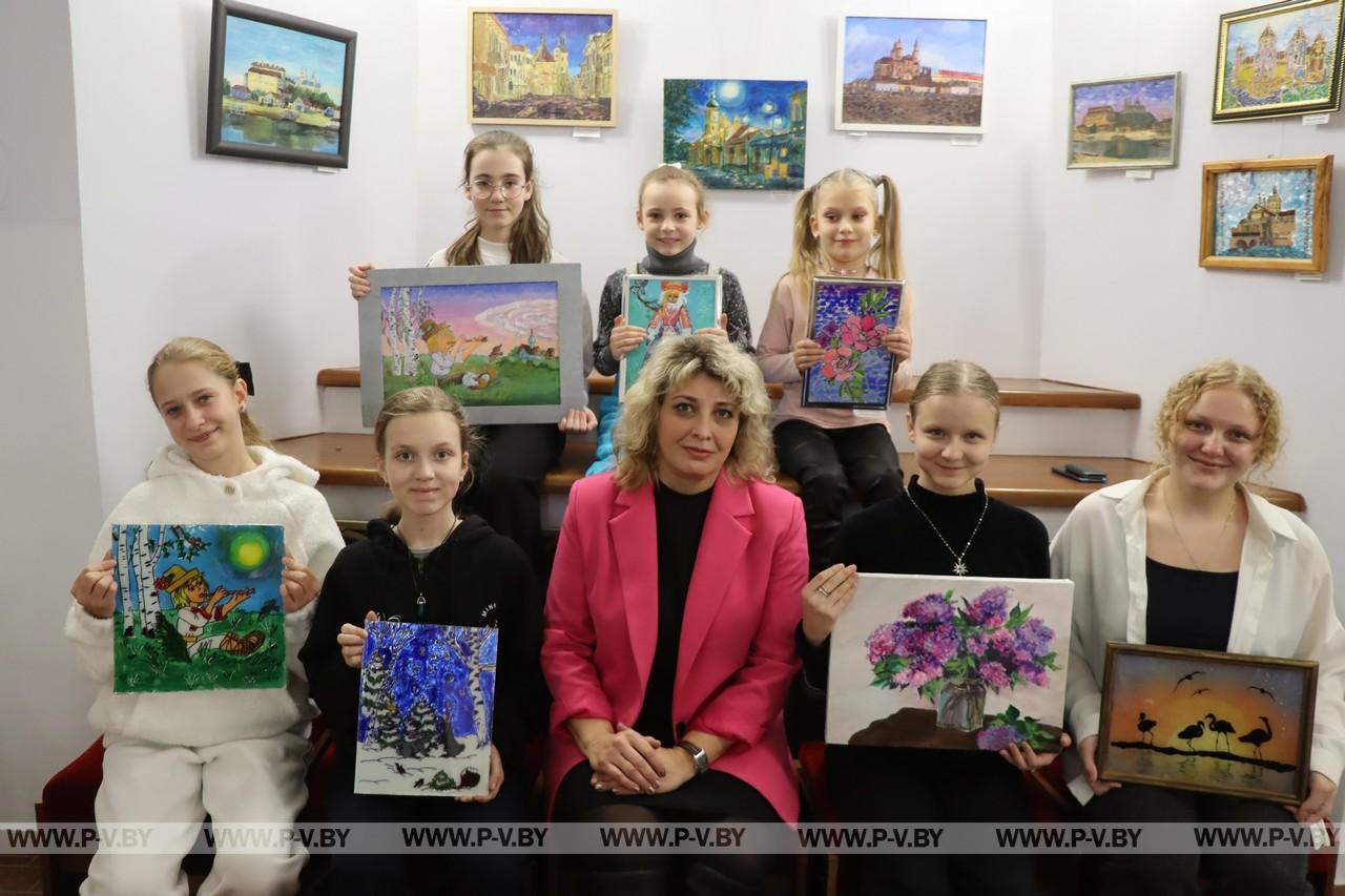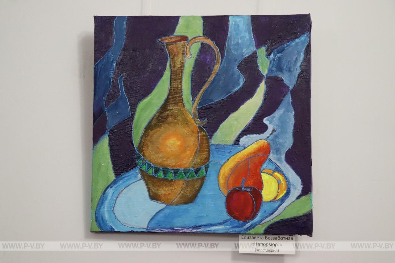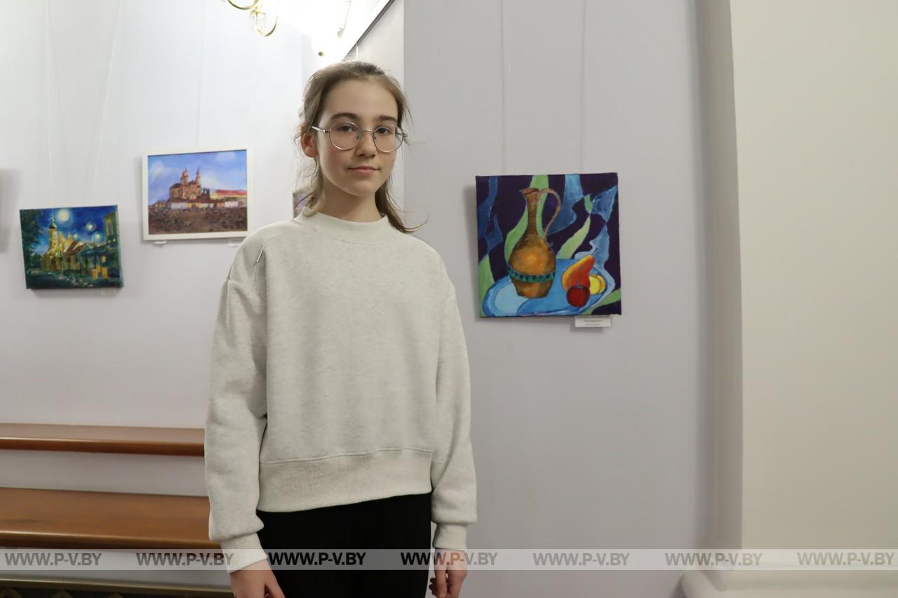 Интересны работы и других юных художников. Если вы еще не посетили выставку, поспешите в концертный зал. Там, среди цветов, сказочных котов и видов Пинска вы отдохнете душой.