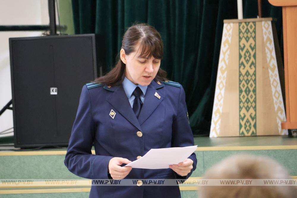 – Наркотик полностью завладевает жизнью зависимого человека. Вырваться из этого крайне тяжело, – обратилась во время беседы после заседания к ребятам и взрослым судья суда Пинского района и города Пинска Ольга Лубник. – За незаконный оборот наркотических средств в Беларуси предусмотрена уголовная ответственность. Она наступает уже с 14 лет. Очень часты в настоящее время случаи сбыта наркотиков организованной группой. Такое преступление влечет наказание в виде лишения свободы на срок от 8 до 20 лет, для несовершеннолетнего – до 12 лет. Если сбыт наркотиков повлек смерть человека – лишение свободы на срок до 25 лет. К сожалению, в распространение наркотиков, например, через осуществление закладок, часто вовлекается молодежь. Практика показывает, что закладчик в среднем успевает «поработать» месяц. Дальше – задержание и минимум восемь лет тюрьмы. Это большой срок и сломанная судьба. Хочу обратить внимание, что по законодательству Беларуси добровольная сдача наркотических средств освобождает от ответственности. Не позволяйте никому вовлечь вас в преступную деятельность, не верьте в обещания легко и много заработать, при этом избежав наказания. Так не бывает.