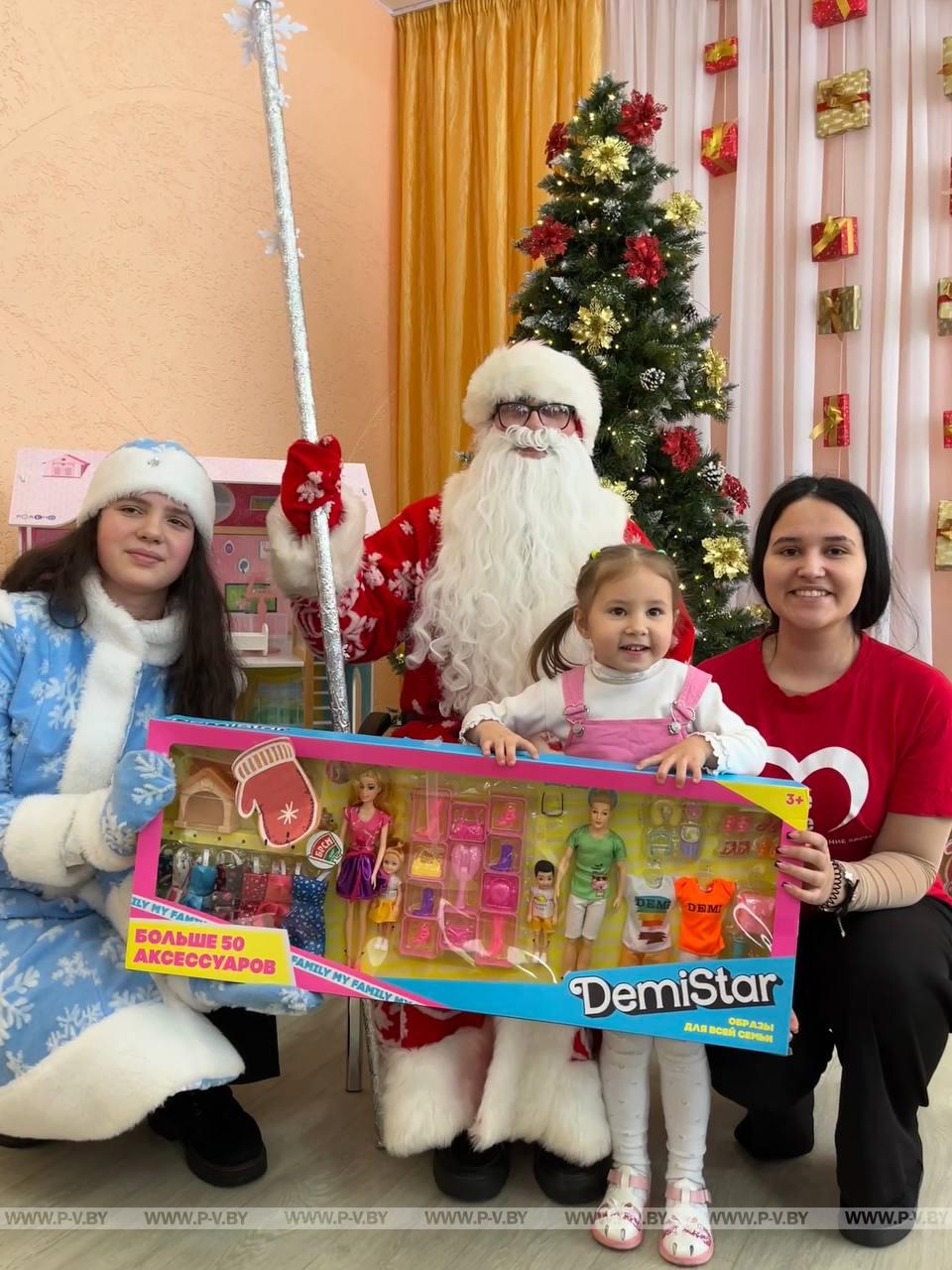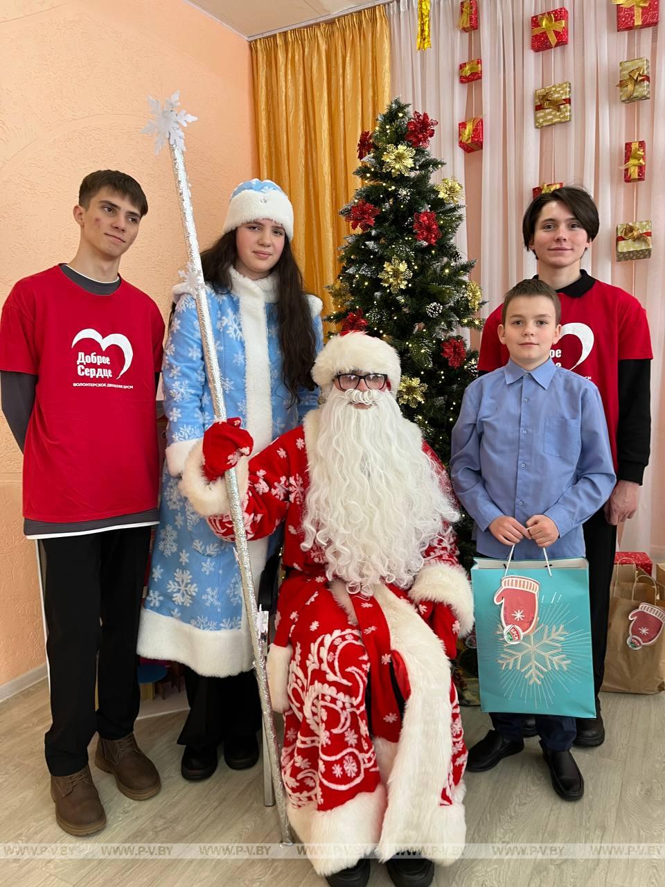 9 января в рамках благотворительной акции «Чудеса на Рождество» активисты волонтерских отрядов ссузов, школ, организаций и предприятий города в сопровождении первого секретаря Пинского ГК ОО «БРСМ» Ольги Ильковец и главного специалиста этой организации Вероники Волуевич посетили ГУО «Пинский социально-педагогический центр г. Пинска».