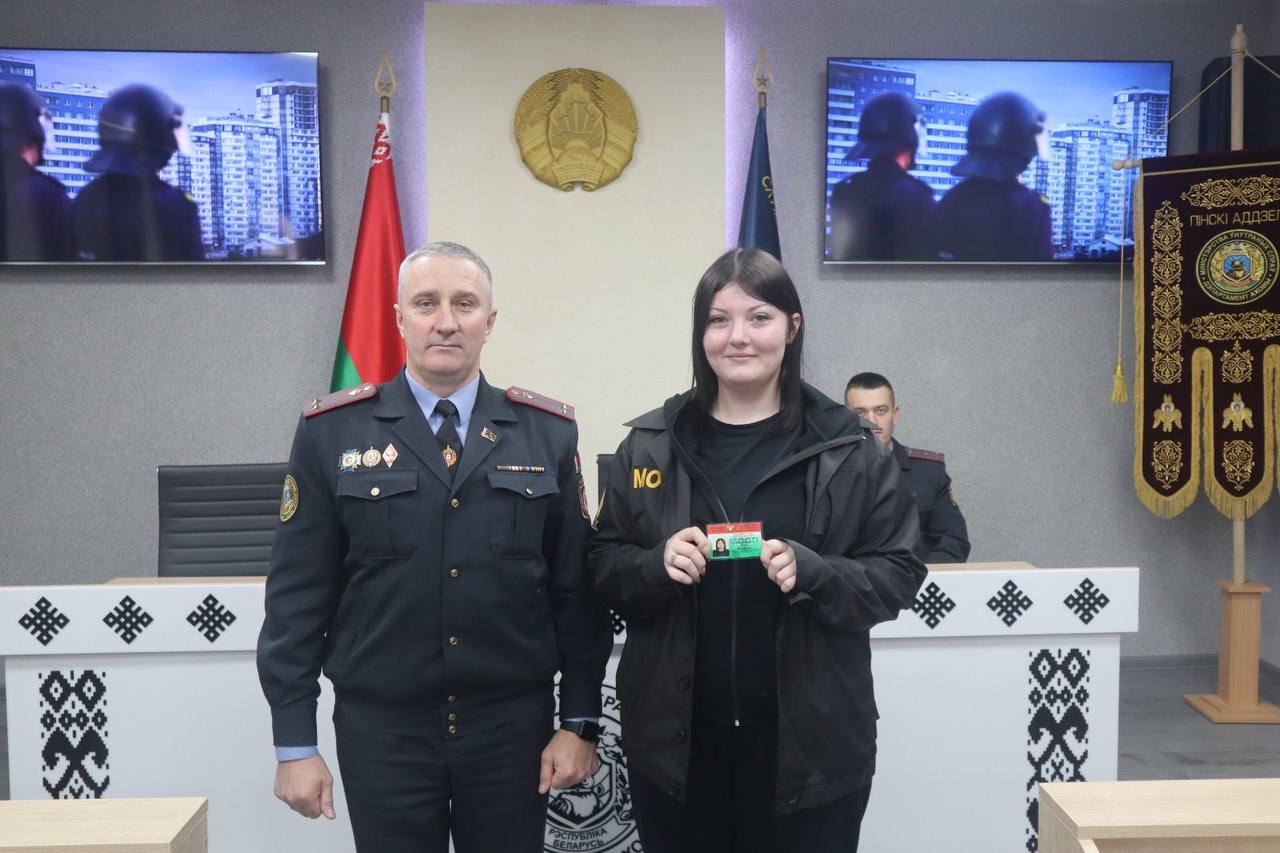 Начальником Пинского отдела Департамента охраны МВД подполковником милиции Сергеем Гайчуком были вручены удостоверения бойцам МООП Полесского государственного университета.