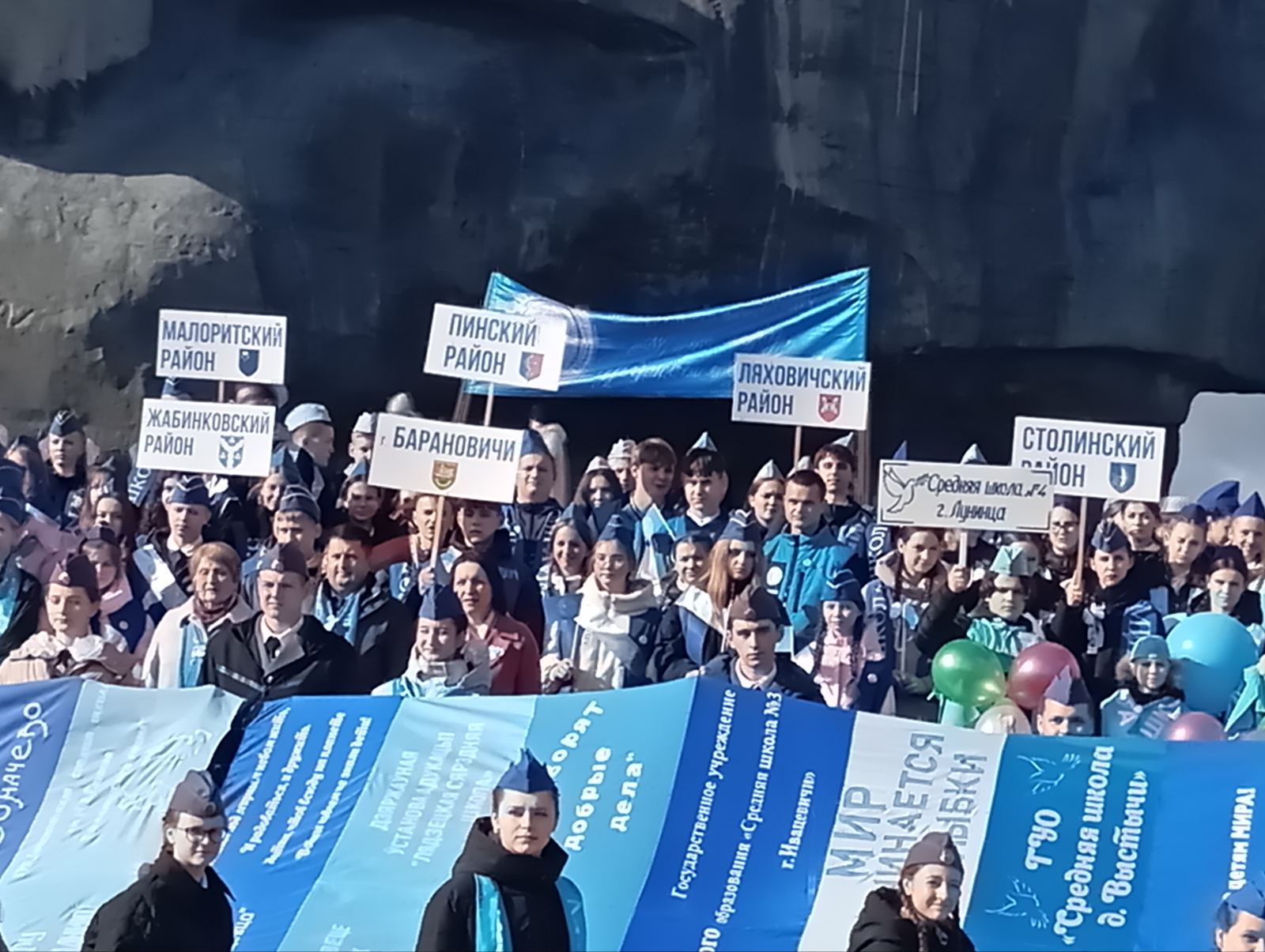 Юные парохонцы со своими сверстниками посетили мемориальный комплекс «Брестская крепость-герой», где прошли открытие мероприятия и митинг-реквием. Под звуки оркестра колонна проследовала до площади Церемониалов. Здесь было развернуто Полотнище мира, сшитое из фрагментов голубой материи от каждой Школы мира, – символ единства и нерушимости дружбы.
