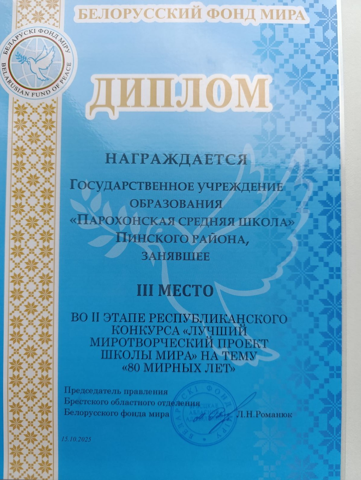Миротворцы Парохонской СШ, которая имеет статус Школы мира, приняли участие в третьем слете, организованном Брестским областным отделением Белорусского фонда мира совместно с главным управлением по образованию облисполкома.