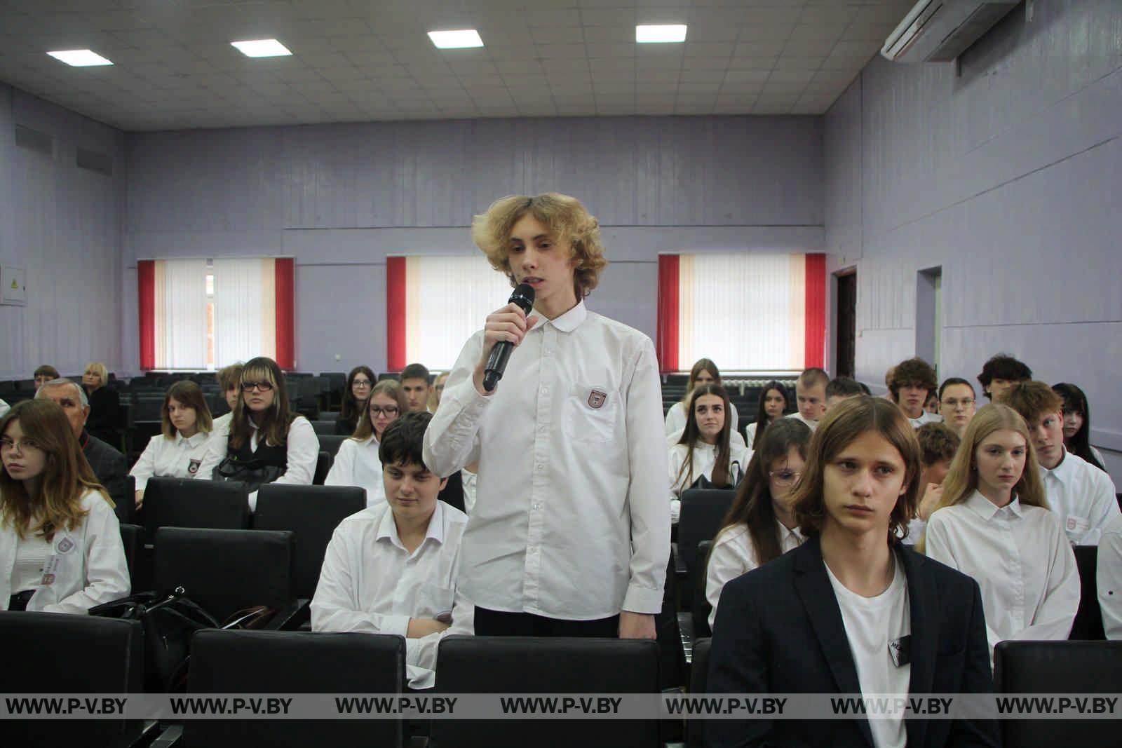 В гимназии № 1 имени Ф. Я. Перца в рамках «Школы активного гражданина» состоялся диалог молодежи с заместителем председателя концерна «Белгоспищепром» Александром Кижуком