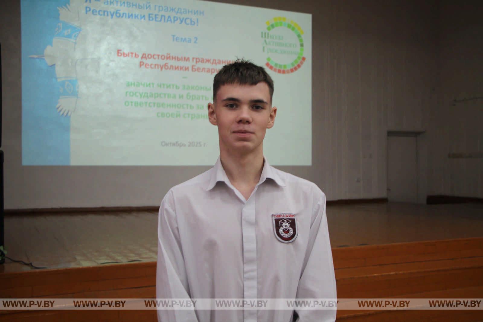 — Я не просто участвую в «Школе активного гражданина», а веду ее. Каждый раз готовлюсь по определенной теме, изучаю материал и рассказываю его старшеклассникам. Считаю, что с помощью ШАГа мы, учащиеся, лучше познаем свою страну, то, как она устроена. Это всегда интересно и полезно!