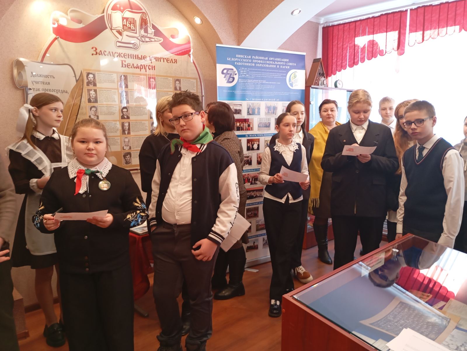 Пинковичская средняя школа предоставила на акцию словарь С. Ожегова 1964 года издания, деревянный кронциркуль и песенник пионеров СССР. К музыкальной защите своих экспонатов слаженная команда учащихся привлекла всех участников мероприятия.