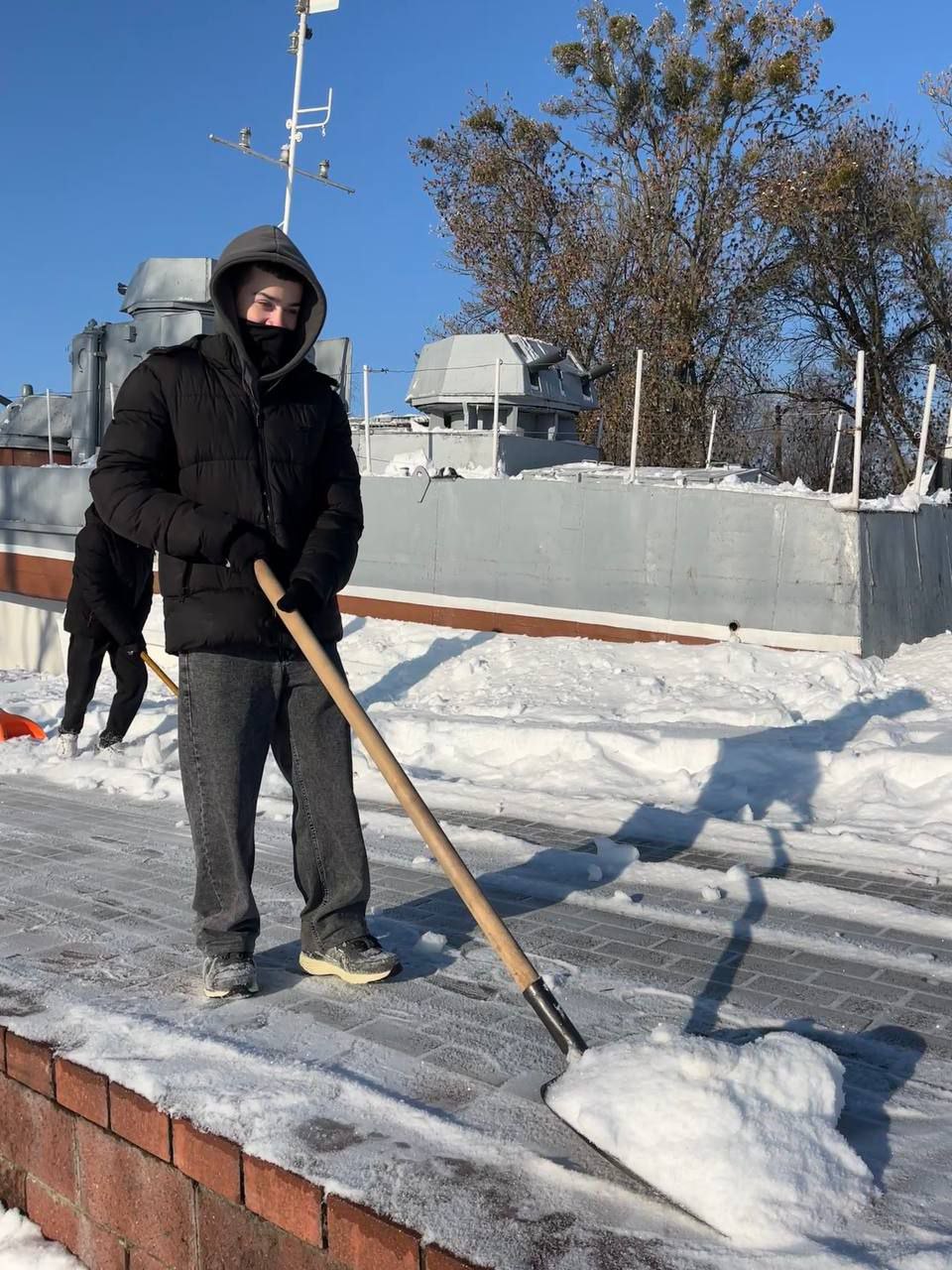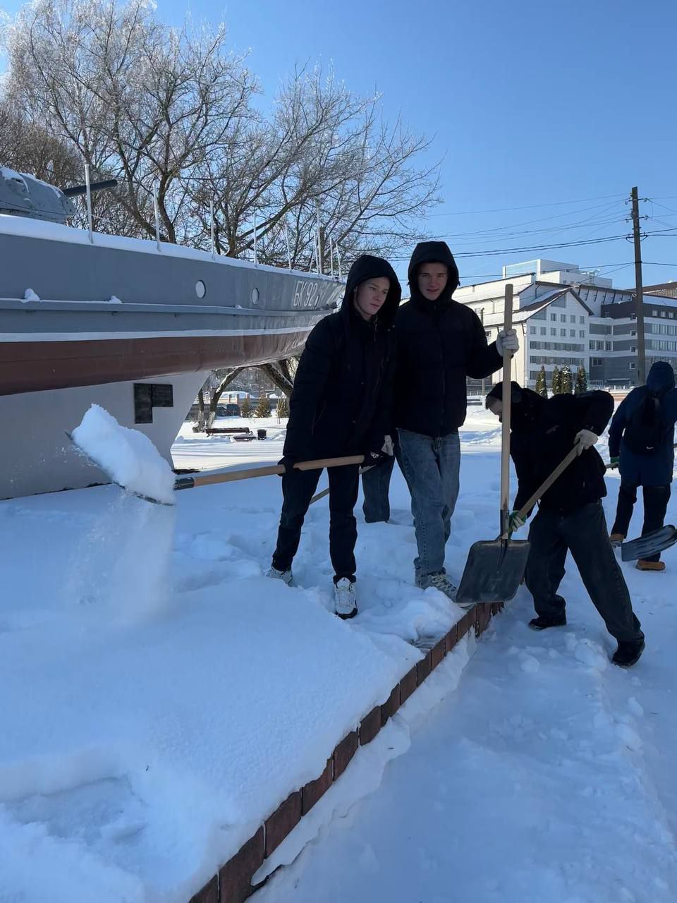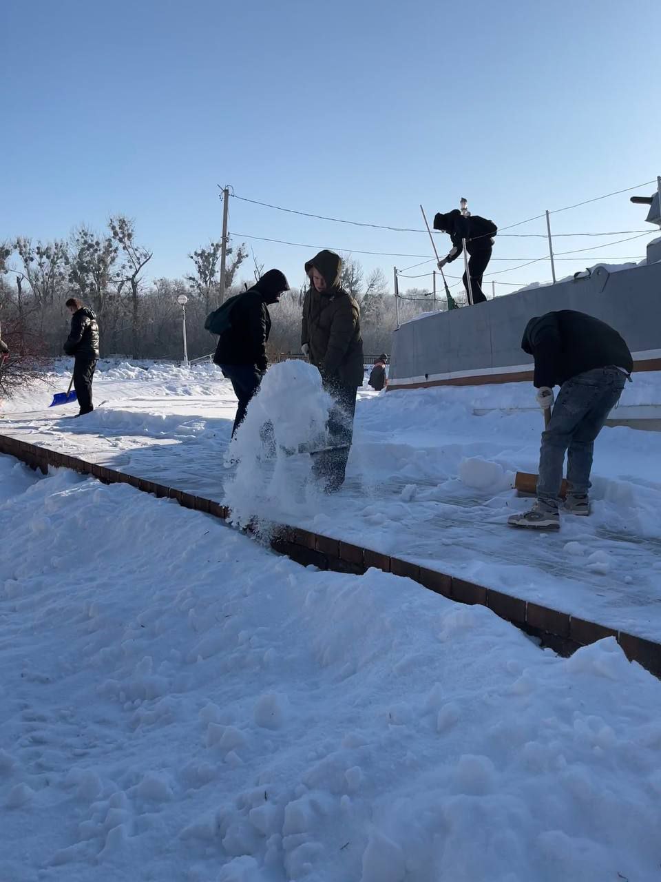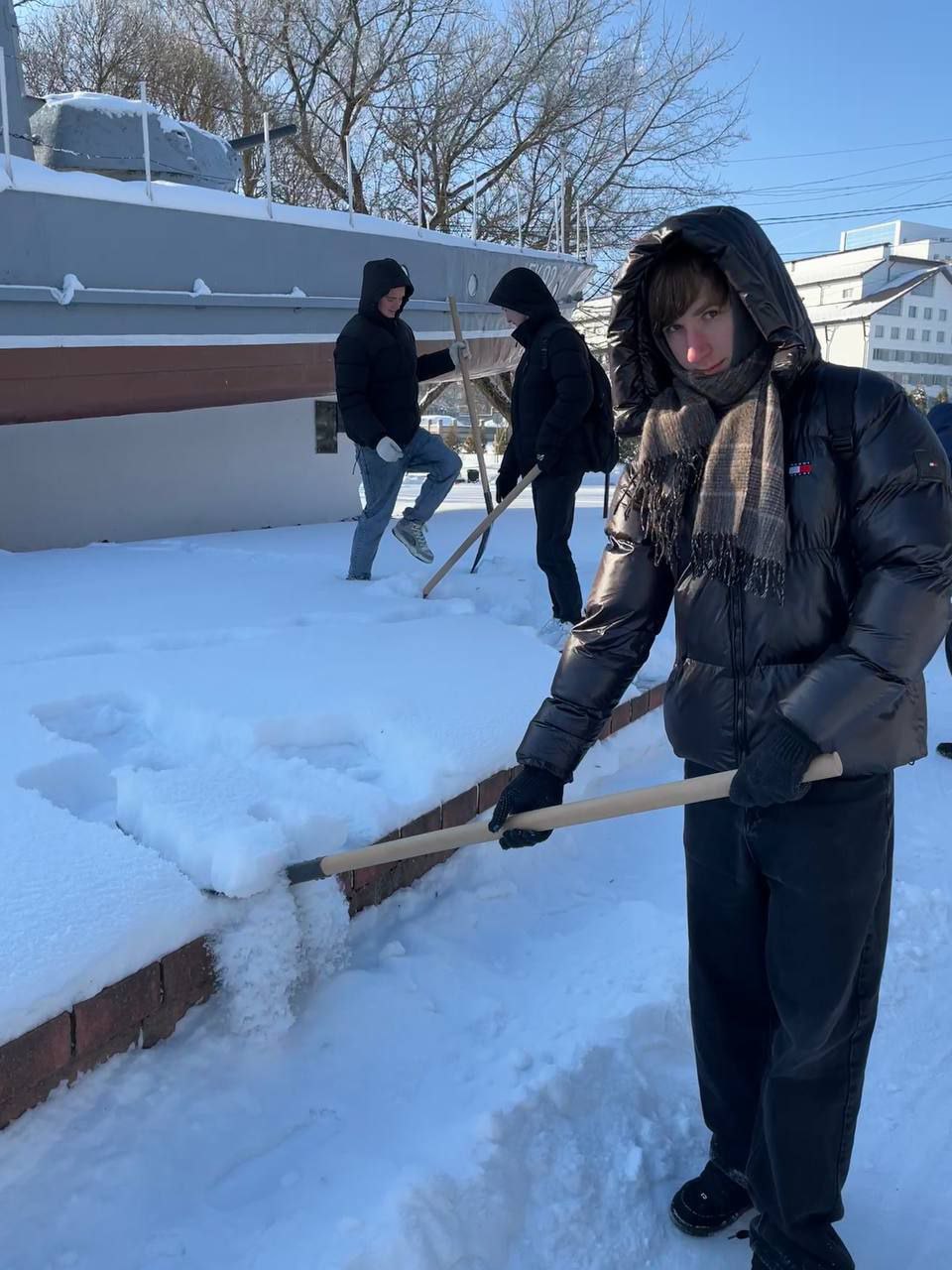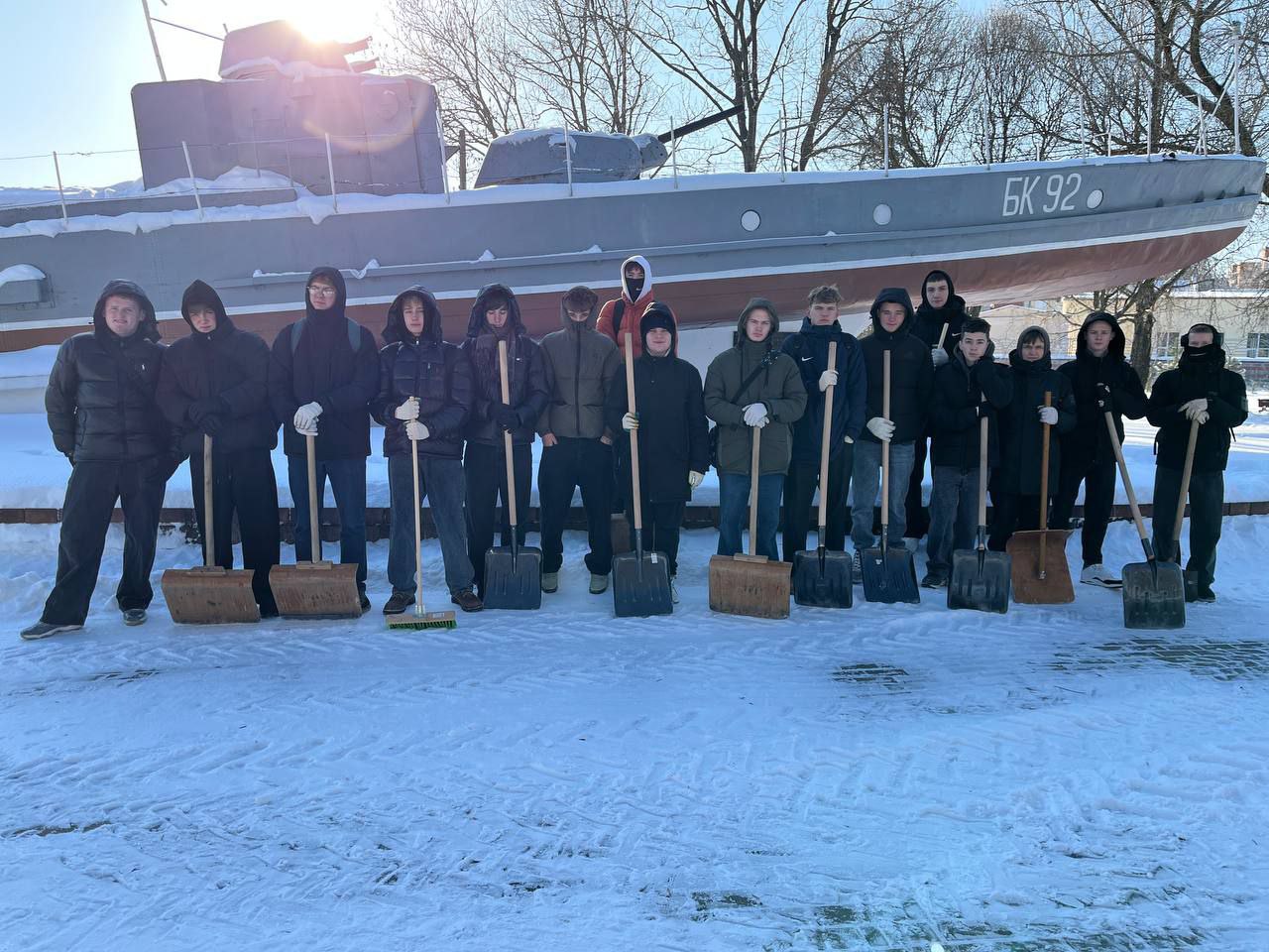 Волонтеры Пинского аграрного технологического колледжа очистили памятник бронекатера БК-92 и прилегающую к нему территорию от снега.