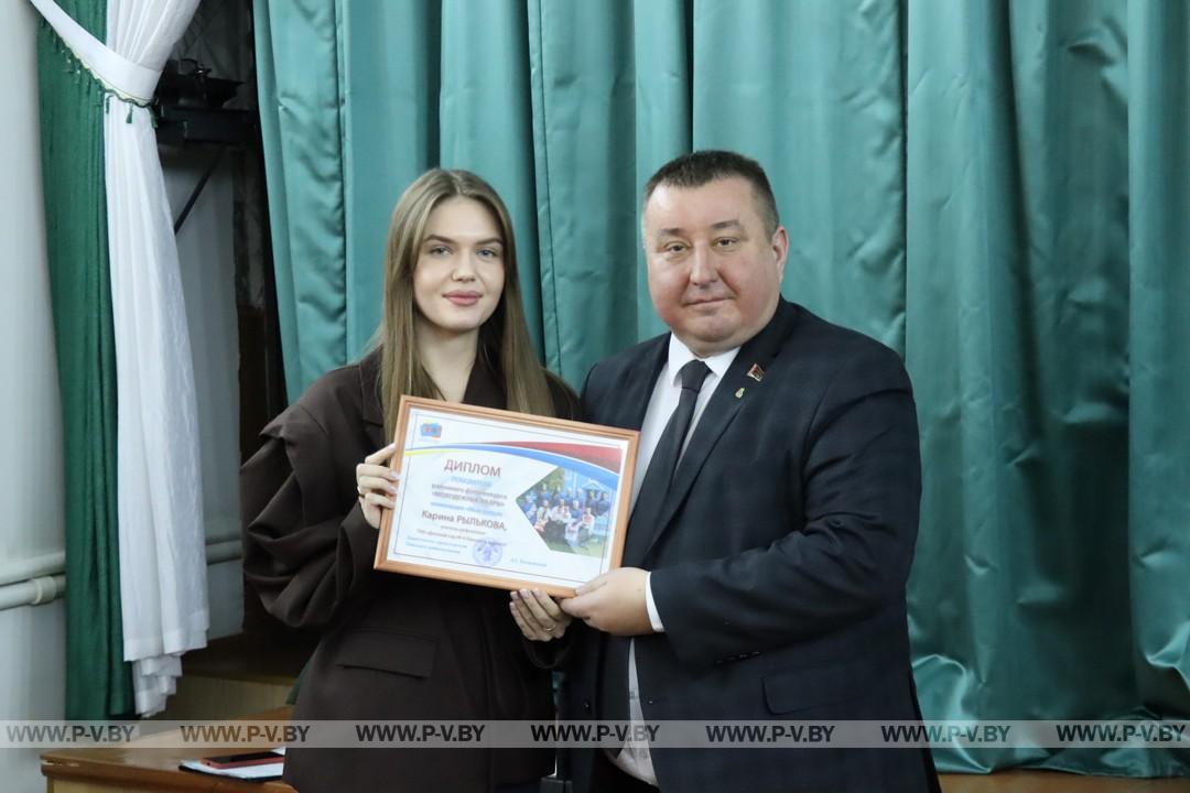 В заключение состоялось награждение победителей фотоконкурса «Молодежные кадры», на который поступило более 40 заявок. Так, в номинации «Моя профессия» лидировал тракторист ОАО «Парохонское» Михаил Корделюк. В номинации «Моя семья» виктория досталась учителю-дефектологу детского сада № 4 Пинского района Карине Рыльковой. В номинации «Мой досуг» не было равных фото главного специалиста по идеологической работе ОАО «Ласицк» Алеси Лугиной.
