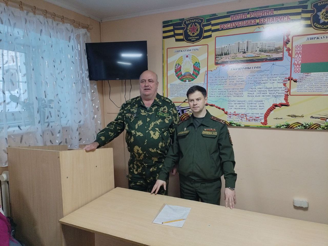 Сейчас здесь проходит приписка 16-летних юношей к приписному участку. Ежедневно перед ребятами выступают Олег Жук, Николай Тихонов, Жанбек Сарбасов, Владимир Цымбалюк, Юрий Пичугин и другие представители первичек ГО Белорусского союза офицеров. Они призывают будущих военнослужащих не бояться трудностей, рассказывают об армейских буднях, приводя в пример собственную жизнь. Подобные выступления продлятся до середины февраля.