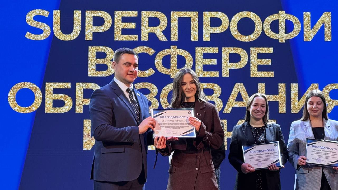 На днях Минске прошла церемония награждения республиканского этапа конкурса молодых специалистов «SuperПрофи‑2025». Благодарность за активное участие в творческом состязании вручил Марии Овсяник министр образования Республики Беларусь Андрей Иванец.