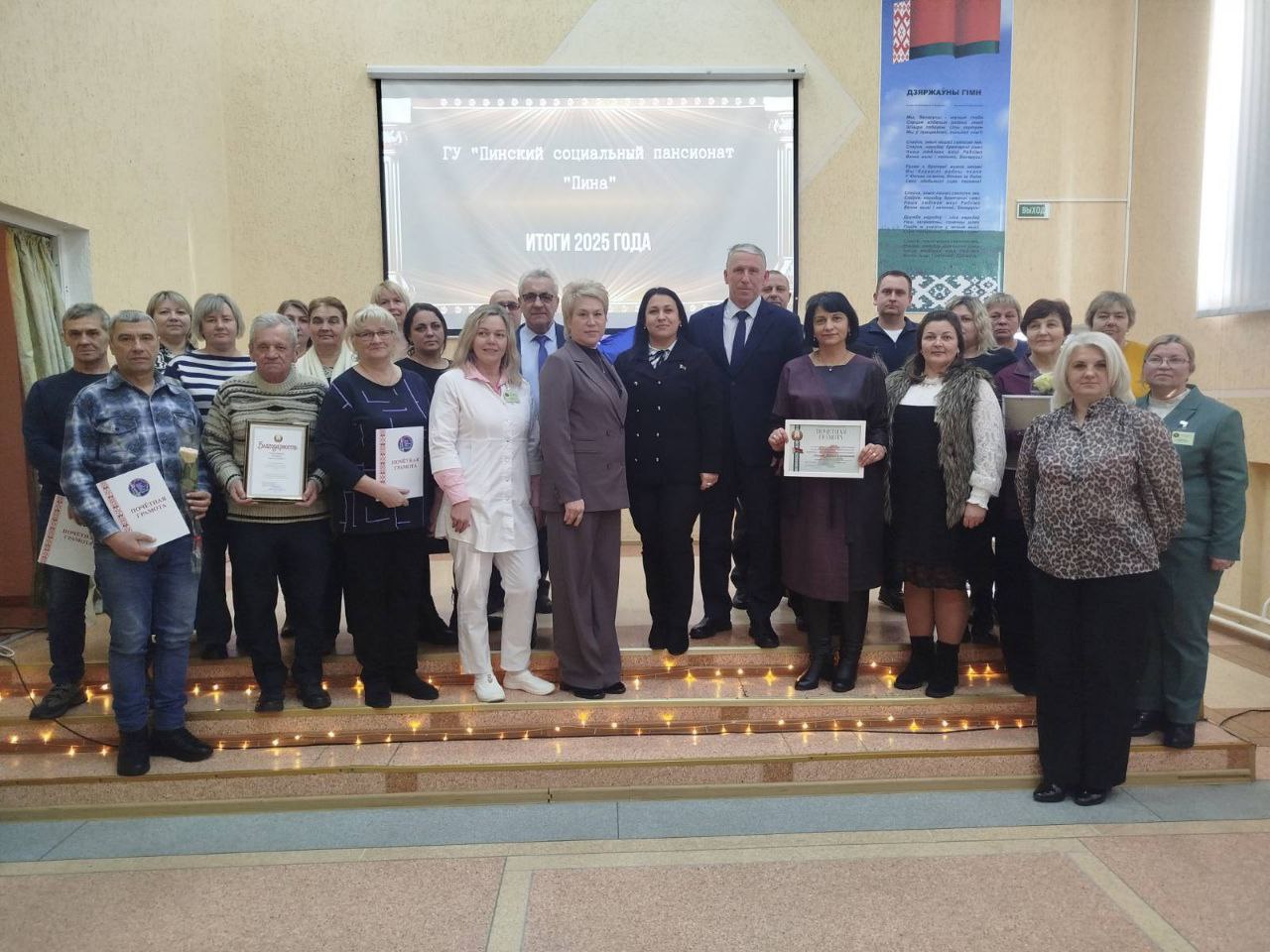 В рамках Республиканской акции «От всей души» Вячеслав Дашкевич вручил подарочный сертификат директору пансионата, а также заслуженные награды работникам по случаю профессионального праздника — Дня социального работника.