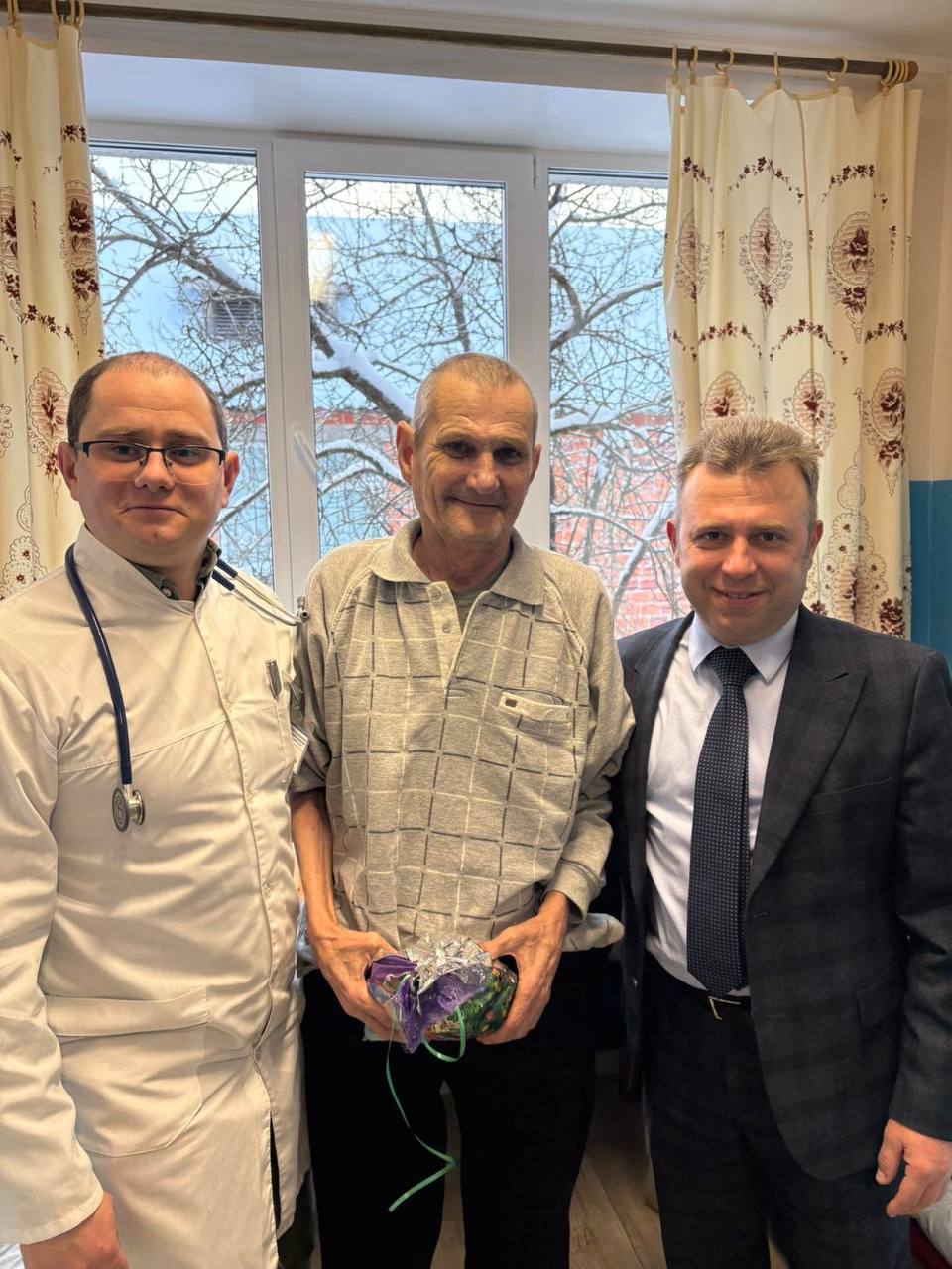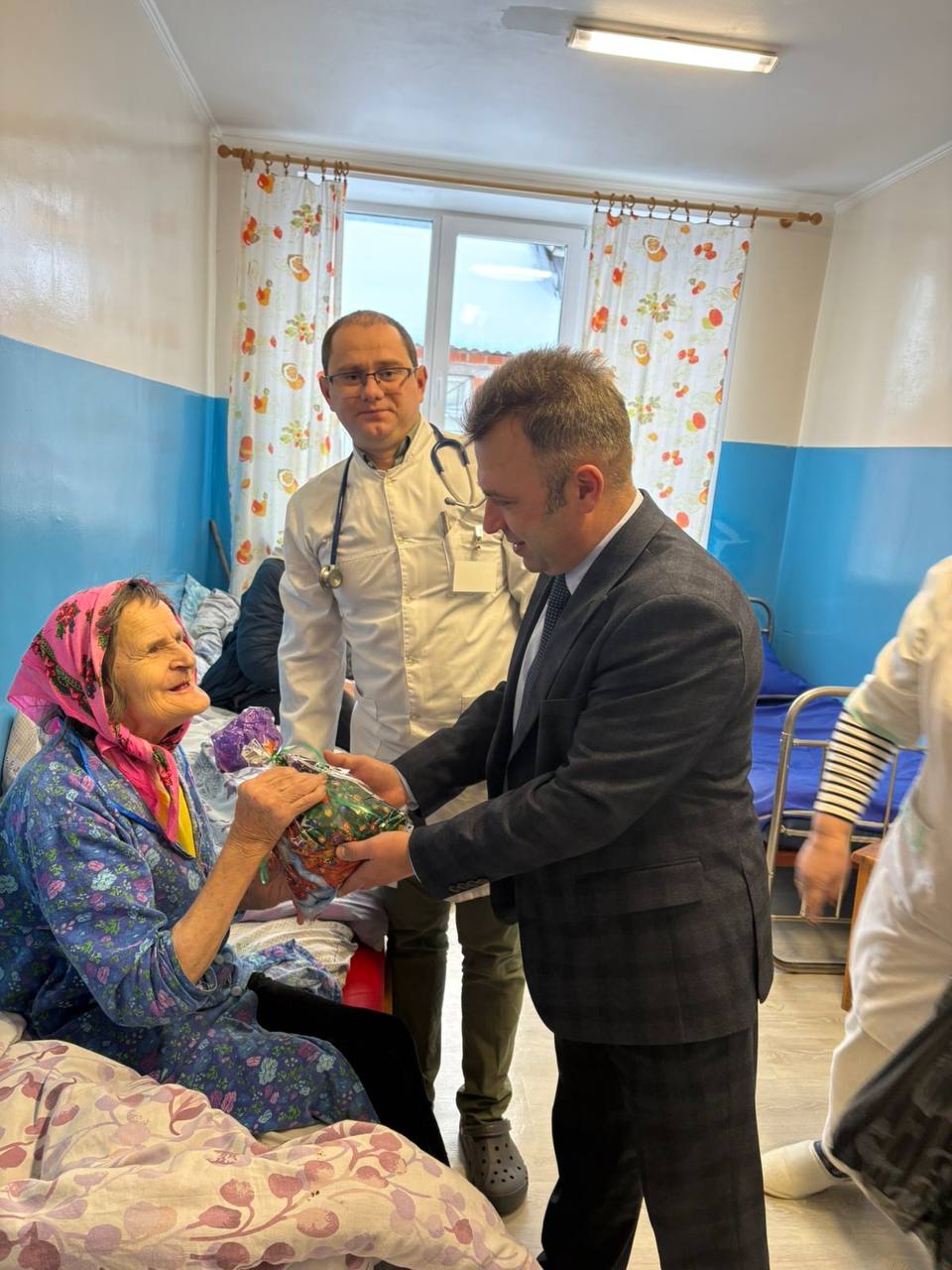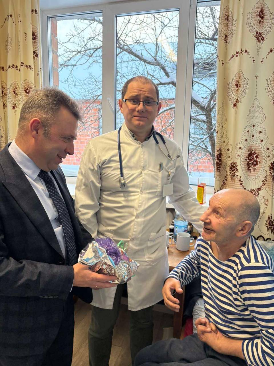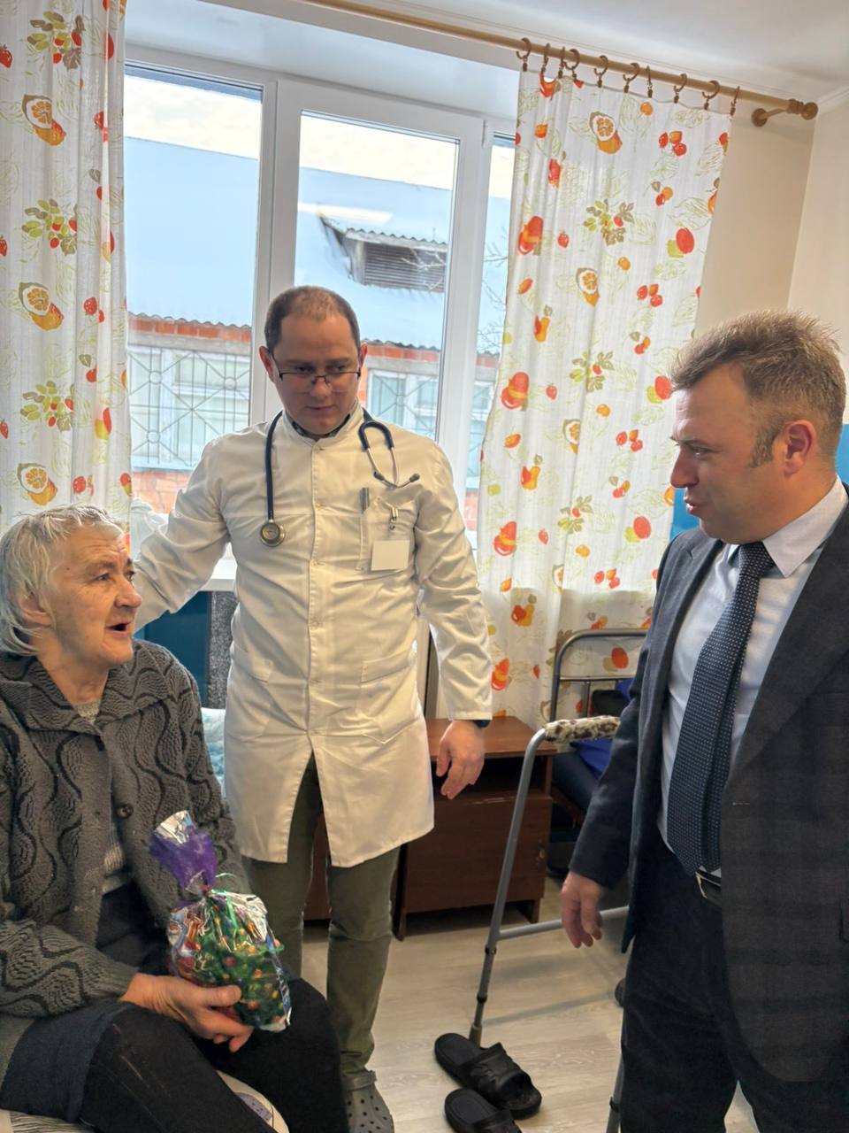 Акция » От всей души» продолжается. Накануне Старого Нового года с подарками и пожеланиями выздоровления в Бобриковской участковой больнице главный врач Пинской городской поликлиники Руслан Полюхович навестил пожилых пациентов учреждения.