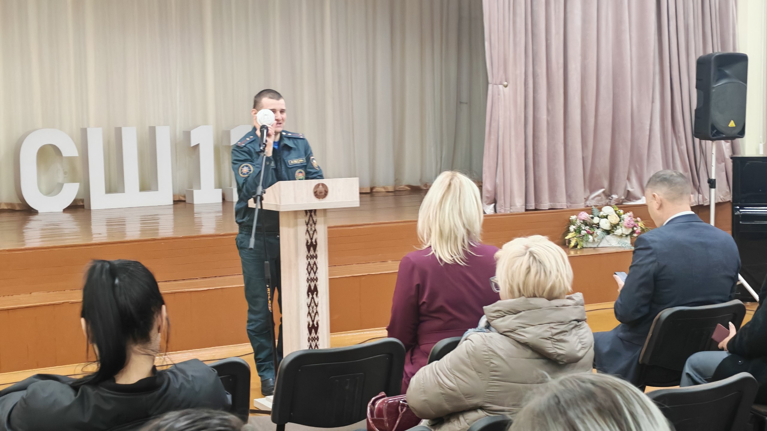 В средней школе № 11 имени В.А. Гайдаенко города Пинска состоялось родительское собрание, на котором выступил инспектор сектора пропаганды и взаимодействия с общественностью ГРОЧС Максим Мирощенко и напомнил правила безопасности.