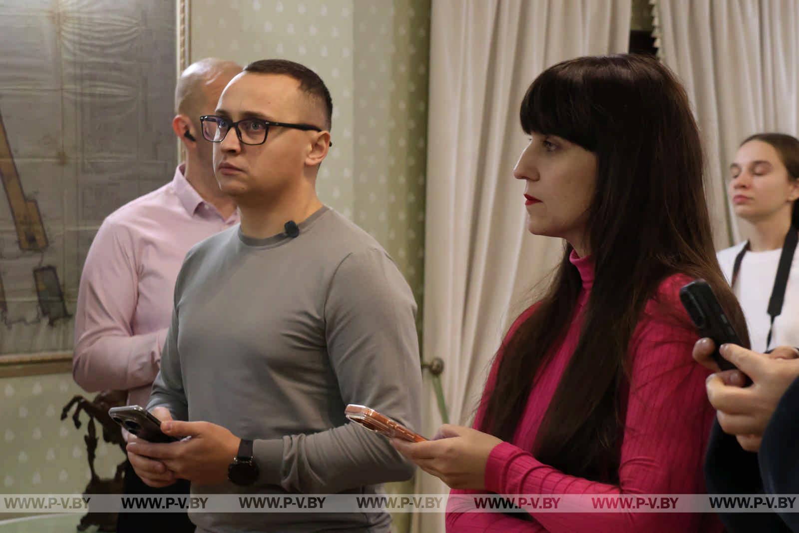 После обзороной экскурсии по усадьбе, блогеров встретил председатель Брестского райисполкома Григорий Панасюк. Он ответил на вопросы, обозначил приоритеты района и пожелал удачной работы.