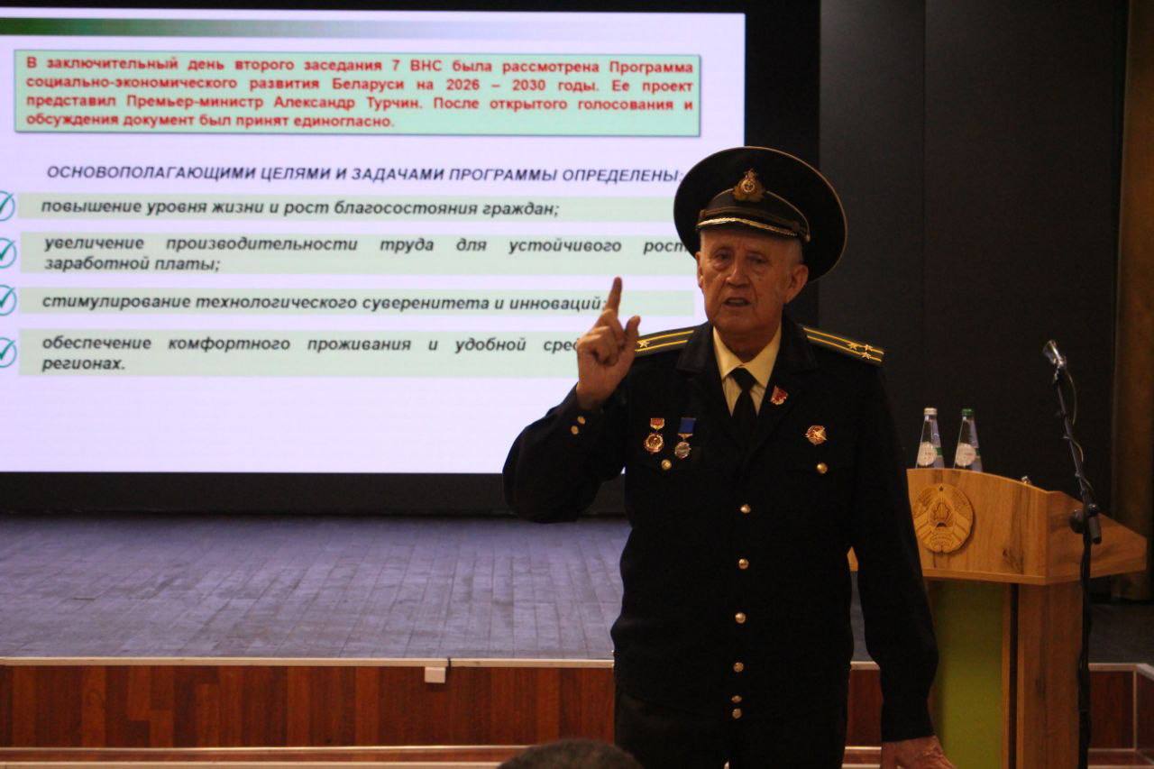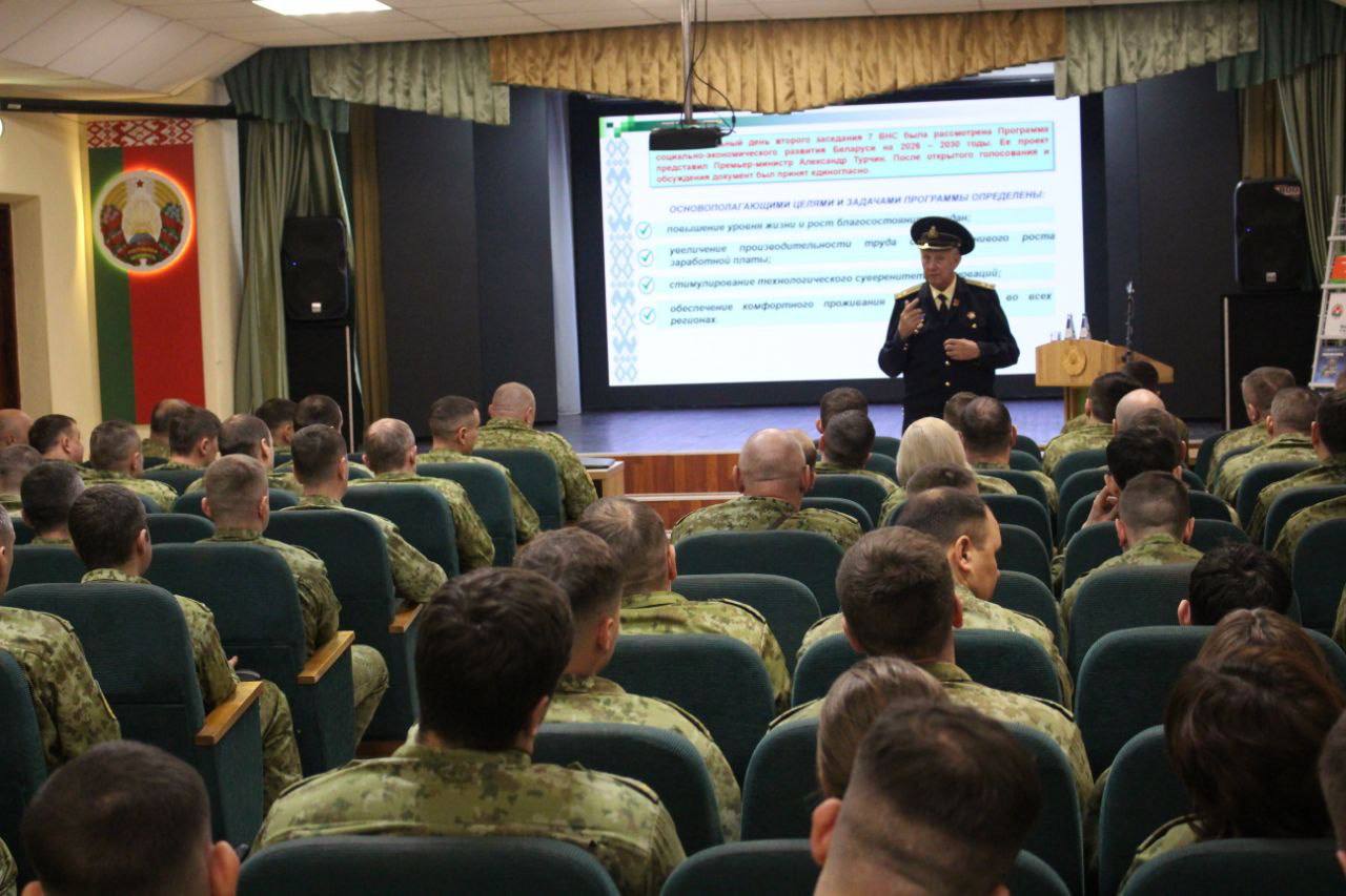 В ходе беседы Николай Иванович представил личному составу ключевые решения и направления, утверждённые на собрании, которые определяют стратегическое развитие Беларуси на ближайшую пятилетку.