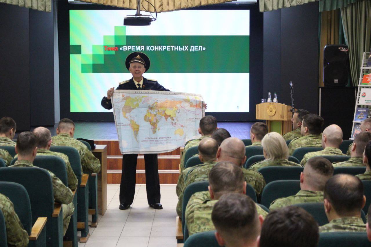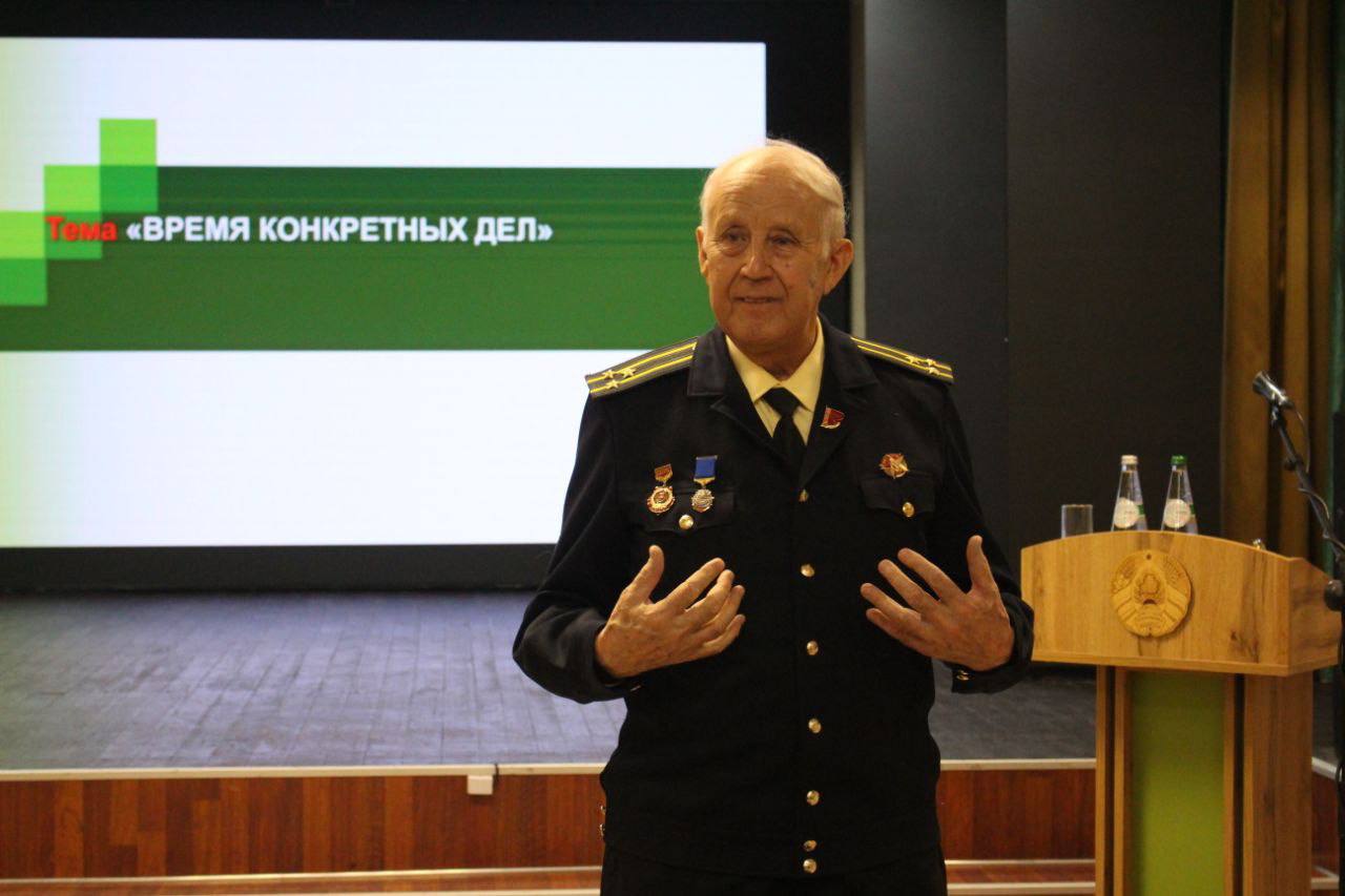 Делегат VII Всебелорусского народного собрания, председатель Пинской городской организации Белорусского общественного объединения ветеранов, капитан 1-го ранга Николай Егоров провел встречу с военнослужащими Пинского пограничного отряда.