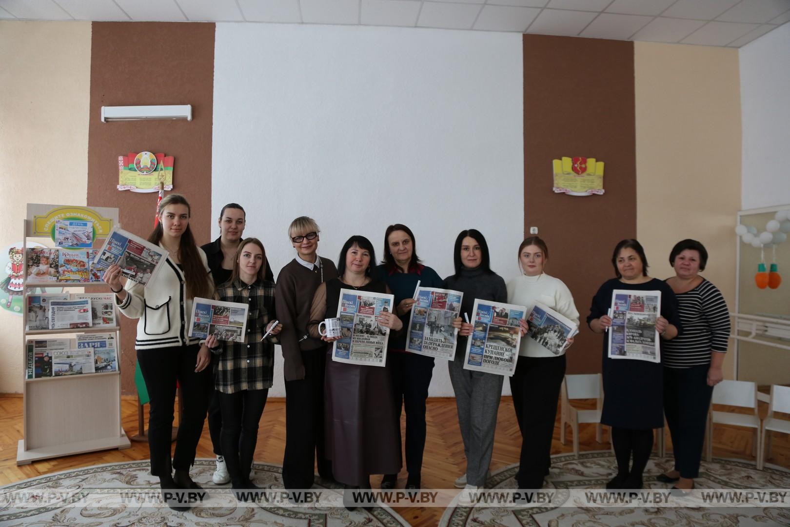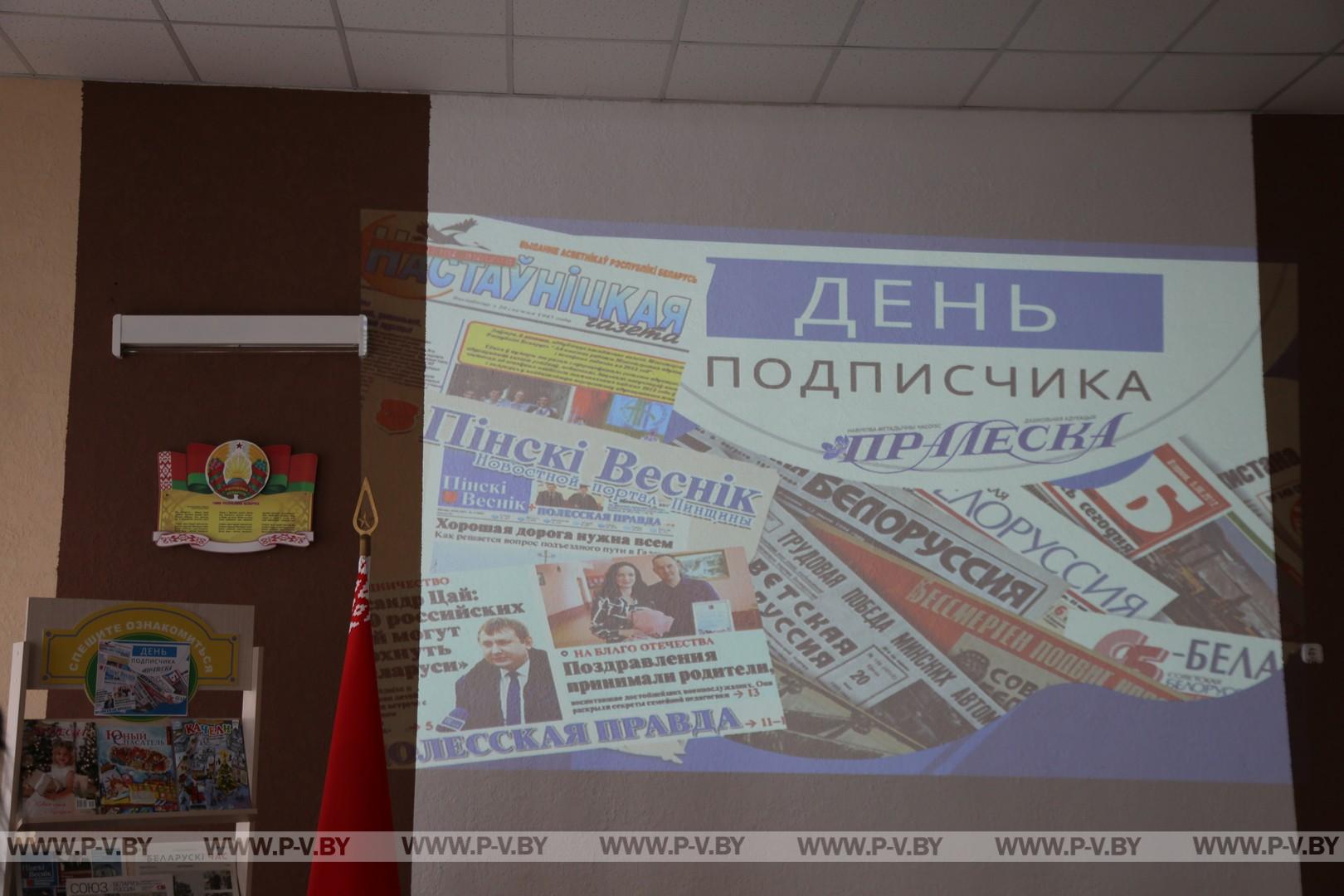 К мероприятию подключились главный редактор и корреспондент местного периодического печатного издания «Пінскі веснік». Работники с интересом листали прессу, задавали вопросы. Многие выписали «ПВ» и «Настаўніцкую газету». «Пінскі веснік» также порадовал своих подписчиков фирменными подарками: их вручали каждому, кто оформлял квартальную или полугодовую подписки на местное общественно-политическое издание.