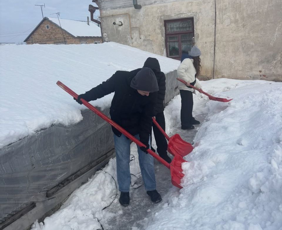 Волонтёры Высоковской средней школы имени Днепровской флотилии навестили одиноко проживающих бабушек. Ребята привезли им угощения, расчистили от снега дорожки и дворы.