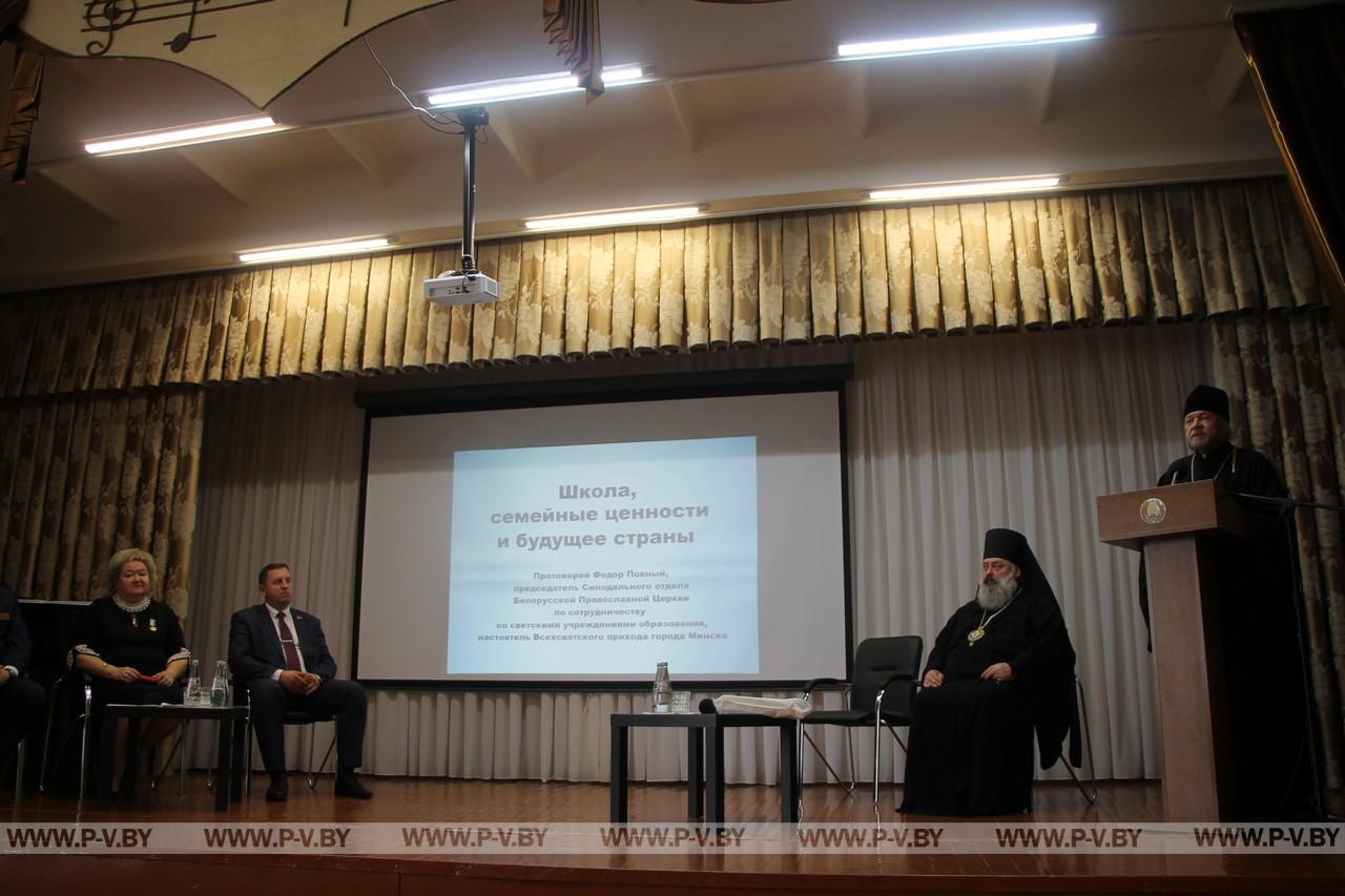 После работы по секциям было организовано пленарное заседание, в котором прияли участие педагоги и духовенство города, а также почетные гости — председатель Синодального отдела по сотрудничеству со светскими учреждениями образования Белорусской Православной Церкви Фёдор Повный, епископ Пинский и Лунинецкий Георгий, заместитель председателя горисполкома Николай Новак, заместитель начальника управления по образованию горисполкома Людмила Былинская.