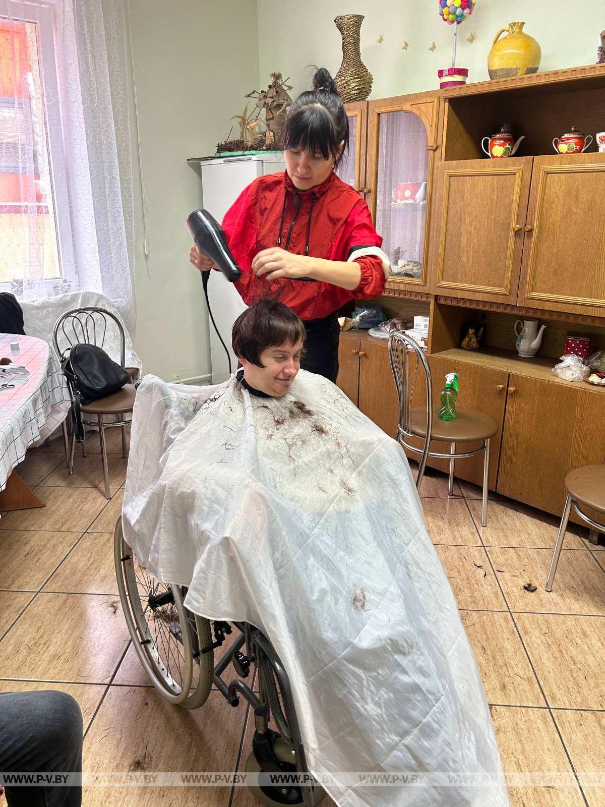 В преддверии Дня матери для мам и подопечных отделения социальной реабилитации, абилитации инвалидов ГУ «Территориальный центр социального обслуживания населения Пинского района» прошла благотворительная акция «Красота в подарок». Об этом рассказала заведующий отделением учреждения Оксана Лекунович.