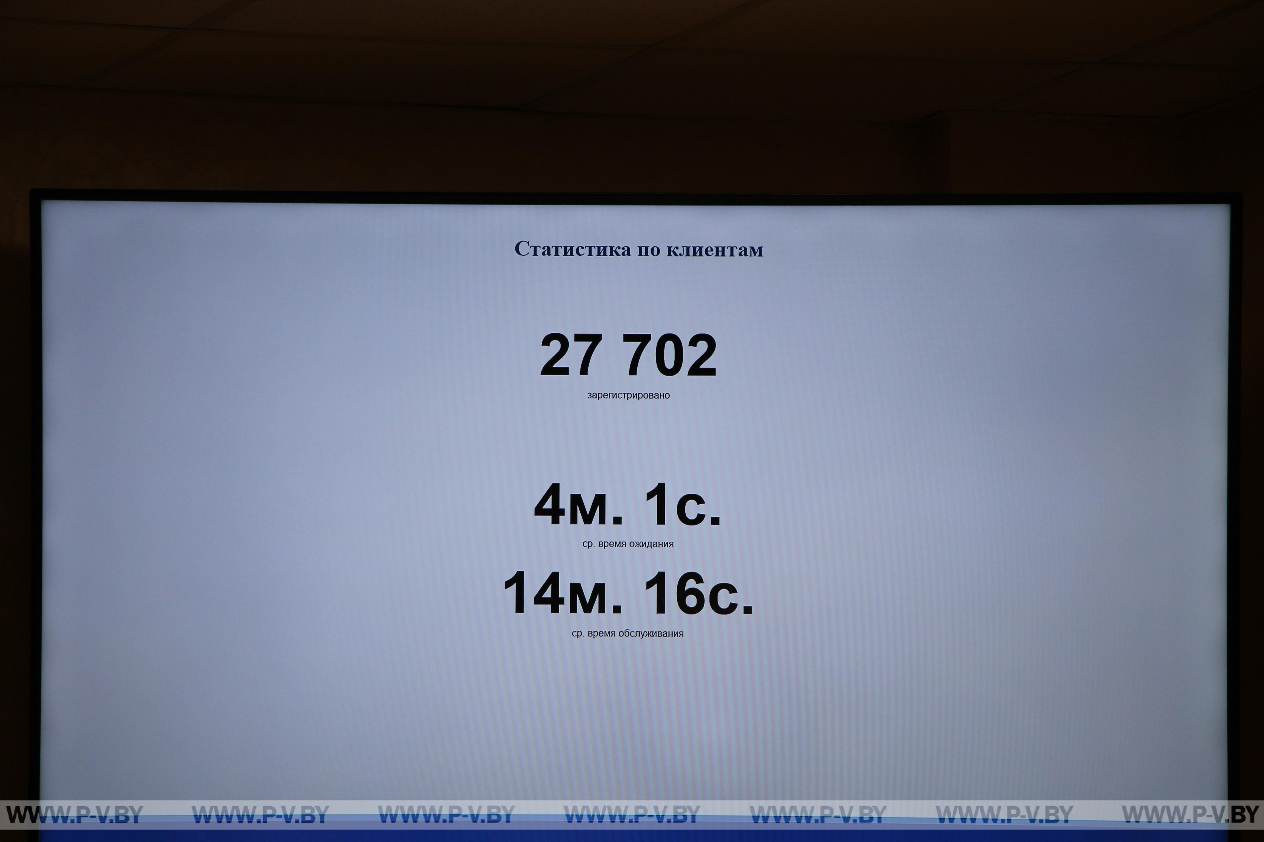 Марина Петровна обратила внимание на удобный график работы, в частности, первые три дня недели «одно окно» открыто с 8.00 до 20.00 без перерыва на обед. Здесь внедрена система электронного управления очередью, потому ждать приходится в среднем четыре минуты одну секунду. К слову, специалисту, чтобы принять заявителя, требуется в среднем 14 минут 16 секунд. А он может обратиться и за справкой о размере пособия на детей и периоде его выплаты, и за разрешительной документацией на возведение одноквартирного, блокированного жилого дома.