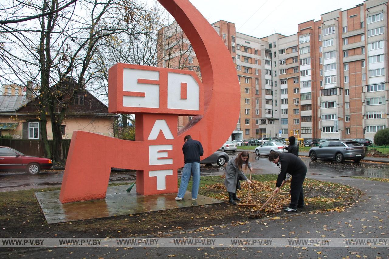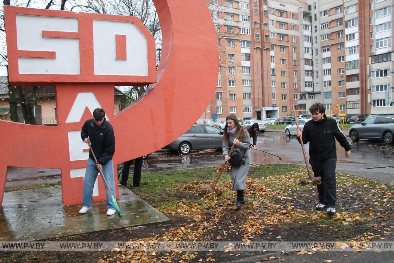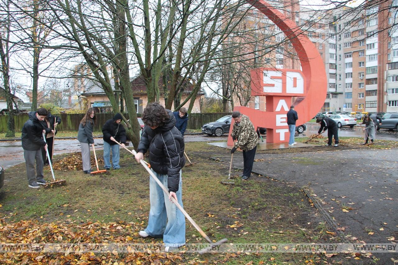 Студенты Полесского государственного университета вместе с преподавателем кафедры экономики и бизнеса, заместителем председателя Пинского отделения Лиги коммунистической молодежи Екатериной Колосовской и учащиеся средней школы № 3 под руководством учителя истории и обществоведения Александра Швецова убирали территорию, где расположен памятный знак «Серп и молот», от мусора и опавших листьев. Шел дождь, но он не помешал сначала потрудиться с огоньком, а потом провести здесь митинг.