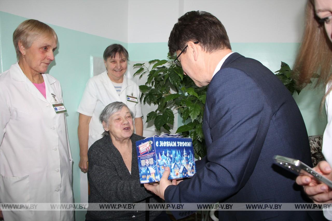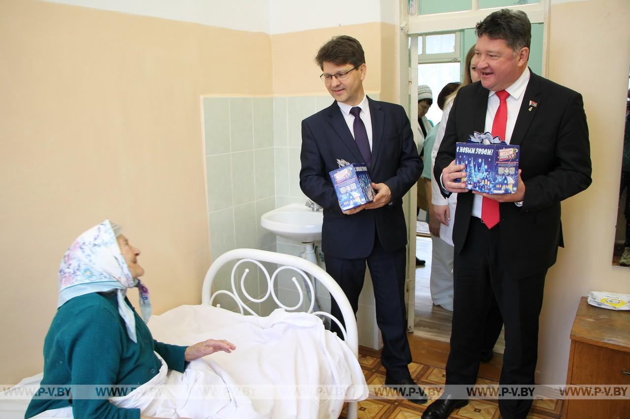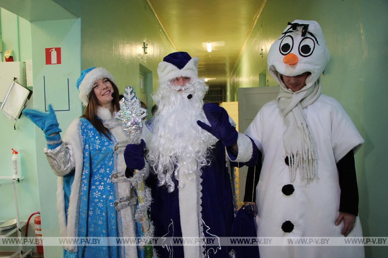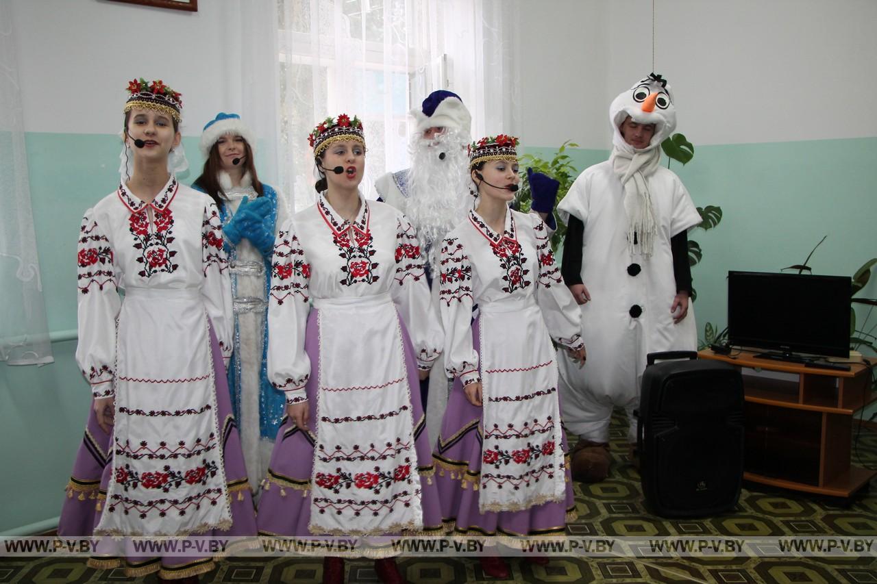 Первыми с приближающимися новогодними и рождественскими праздниками поздравления принимали пациенты Поречской больницы сестринского ухода. К ним приехали председатель городского Совета депутатов Сергей Куницкий, главный врач Пинской центральной поликлиники Игорь Киктенко, а еще настоящие Дед Мороз со Снегурочкой, Снеговик и другие артисты.