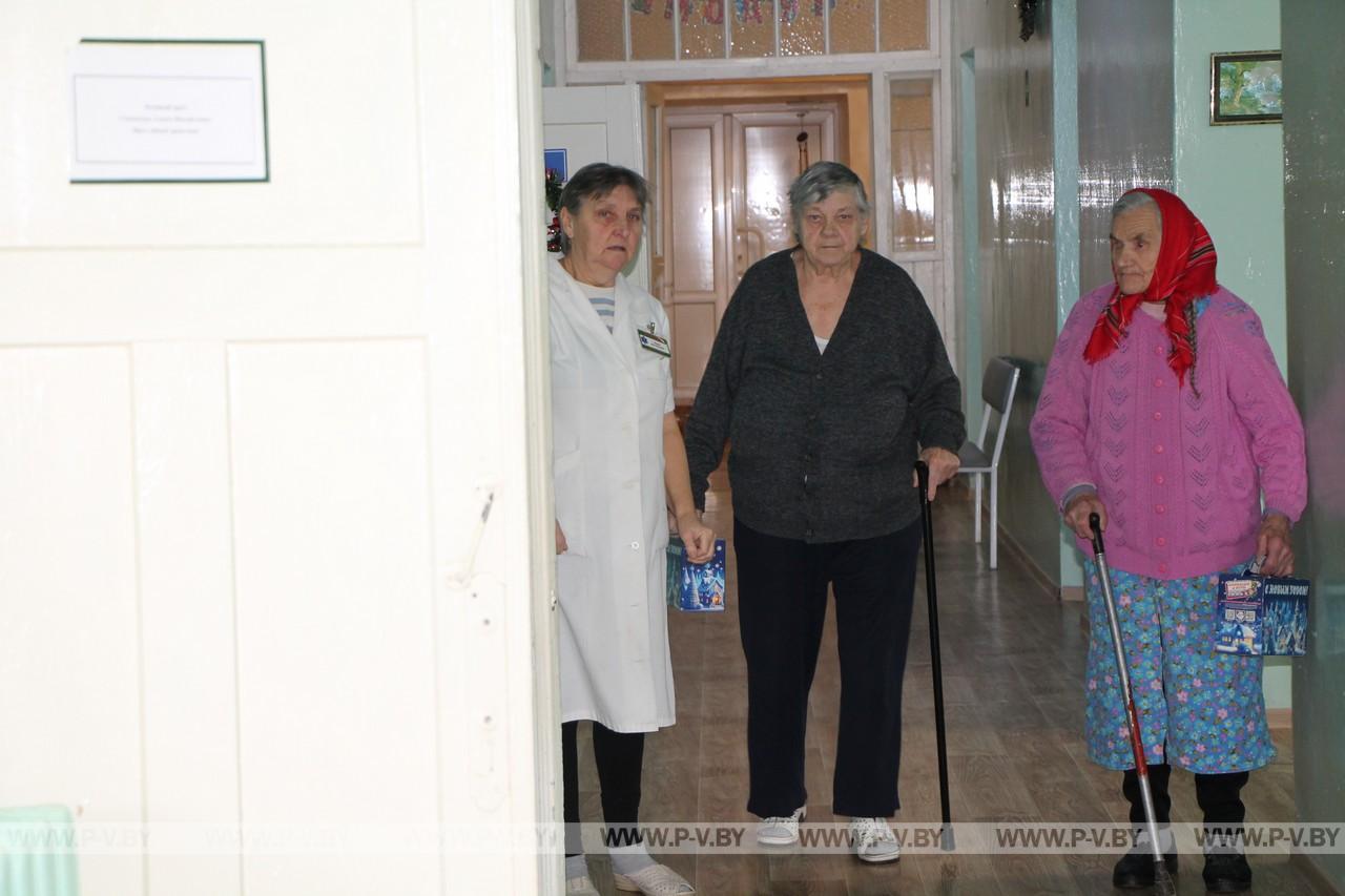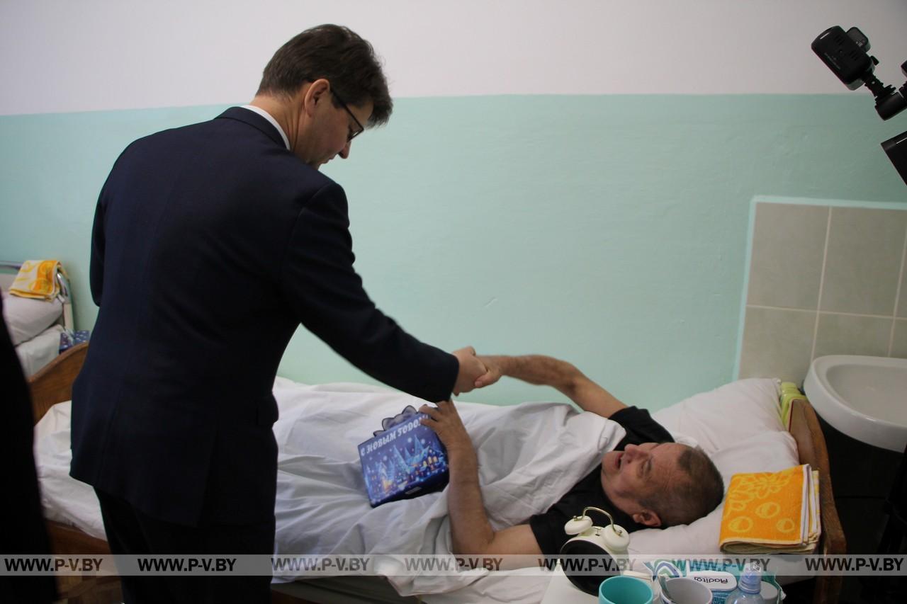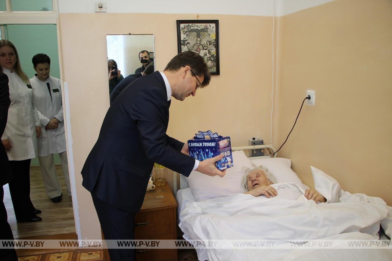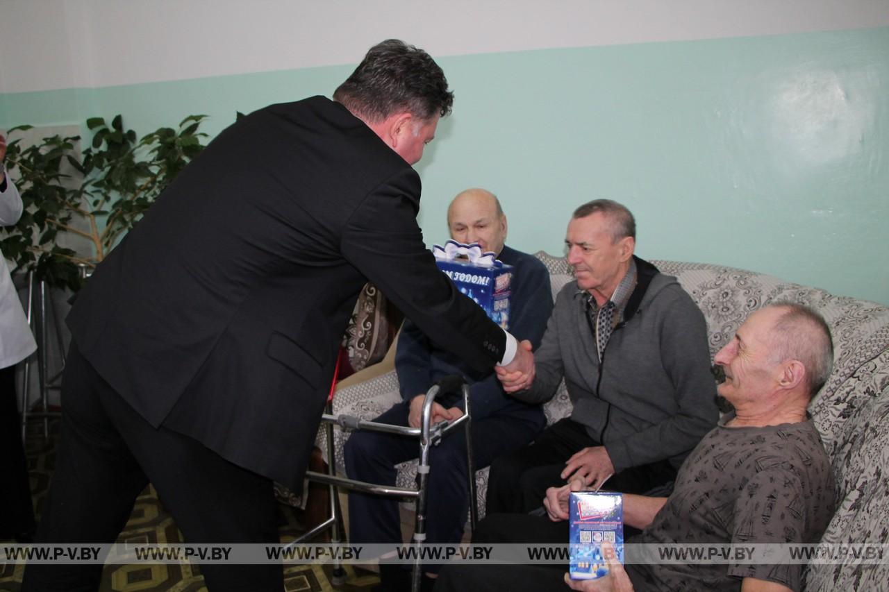 Первыми с приближающимися новогодними и рождественскими праздниками поздравления принимали пациенты Поречской больницы сестринского ухода. К ним приехали председатель городского Совета депутатов Сергей Куницкий, главный врач Пинской центральной поликлиники Игорь Киктенко, а еще настоящие Дед Мороз со Снегурочкой, Снеговик и другие артисты.