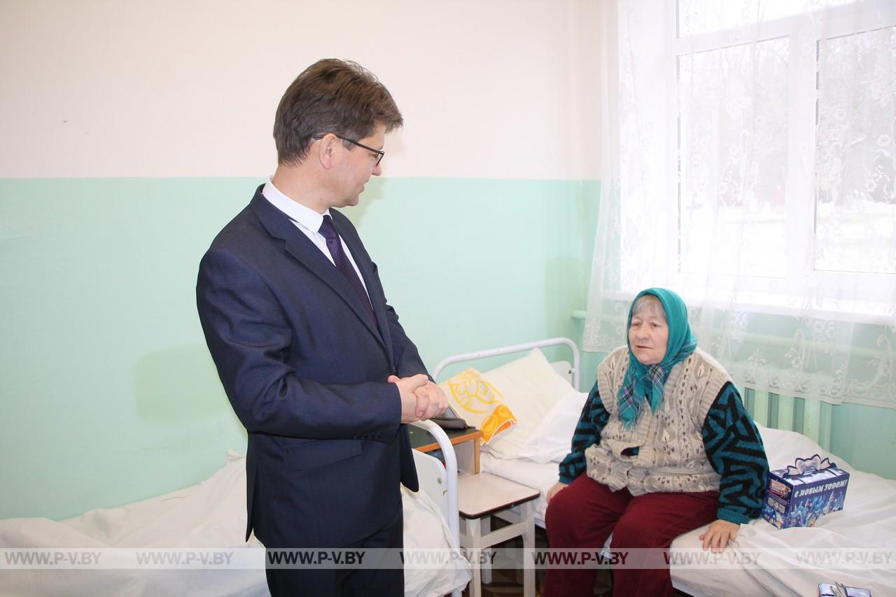 — Пинское здравоохранение традиционно участвует в республиканской акции «От всей души». В первый день вместе с представителями городской власти мы решили посетить Поречскую больницу сестринского ухода, где находятся 23 наших пациента. Всего в Пинском районе организовано 98 коек сестринского ухода. Здесь лежат пациенты, которые в какой-то степени по разным причинам обделены вниманием, одинокие. Им требуются уход и медицинское сопровождение. Когда они получают необходимую помощь, переводим в пансионат или их забирают родственники. Для таких пациентов акция особенно важна, поэтому мы тут. С праздничной программой, с подарками от администрации города, от здравоохранения. Чтобы поделиться с ними частичкой радости в преддверии Нового года и Рождества.