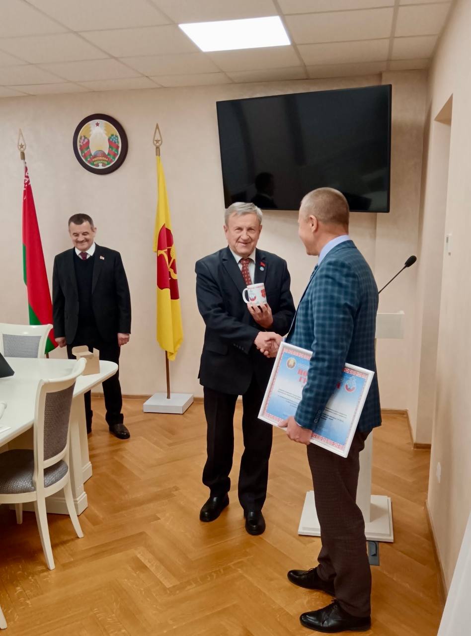 Председатель Пинской городской организации ОСВОД Юрий Пичугин поздравил с 60-летием председателя первичной организации ОСВОД Пинского горисполкома Геннадия Кохнюка.