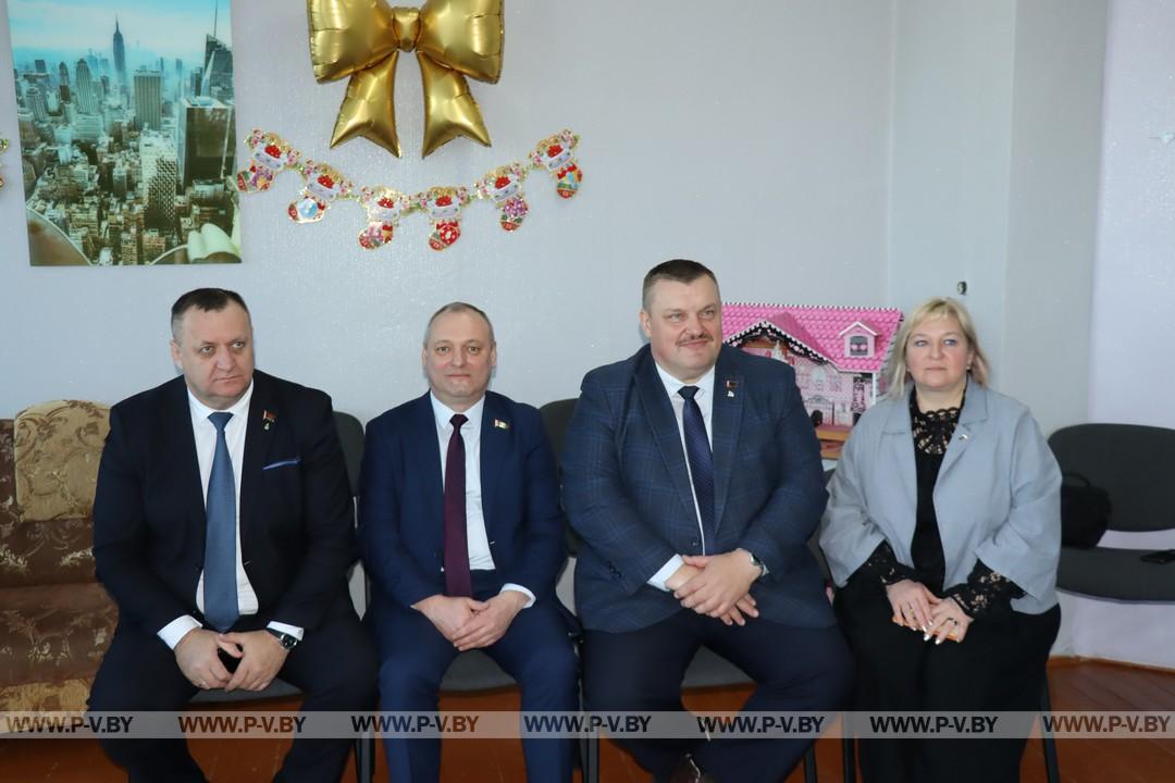 К мальчикам и девочкам, а их сейчас в СПЦ находится 16, приехали председатель районного Совета депутатов, глава районного отделения Белорусской партии «Белая Русь» Вячеслав Лозюк, управляющий делами райисполкома, председатель РО РОО «Белая Русь» Игорь Середич, депутат Палаты представителей Национального собрания Республики Беларусь Владимир Колесникович. К ним присоединились председатель Логишинского сельисполкома Наталья Лихота и заместитель директора по идеологической работе ОАО «Пинскрайагросервис» Алла Ролинская.