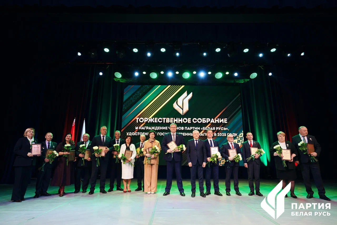 Новости из столицы. 16 января во Дворце Республики прошло торжественное собрание и награждение членов Белорусской партии «Белая Русь», удостоенных государственных наград в 2025 году. На мероприятии присутствовала делегация Пинска и Пинского района.