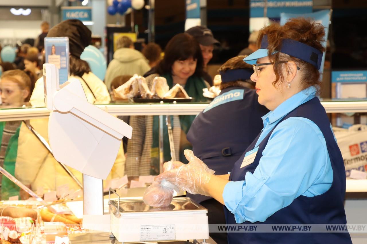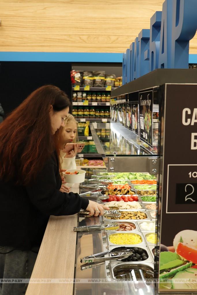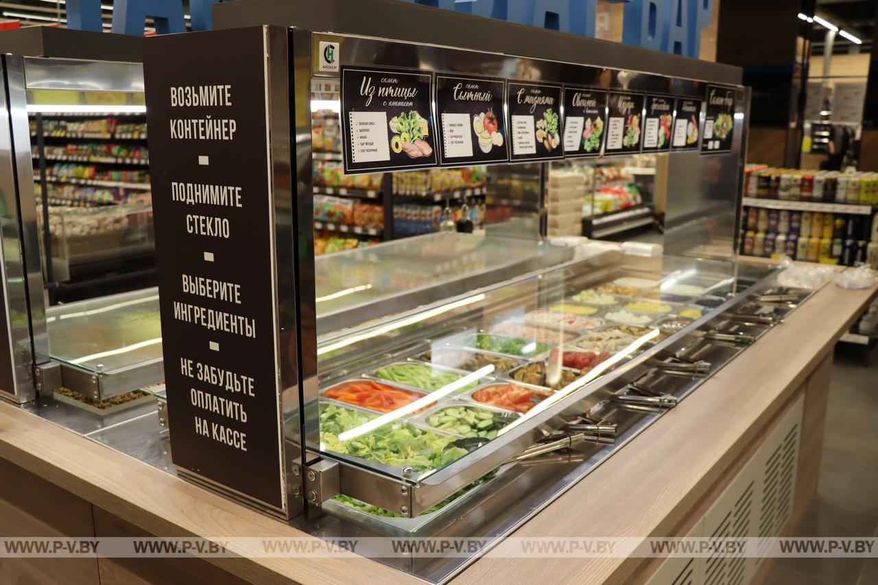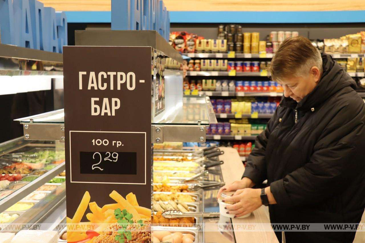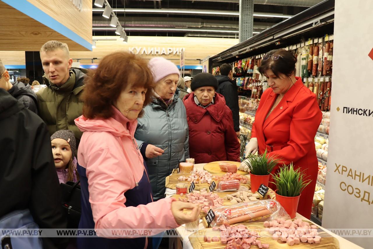 Все выглядит красиво и аппетитно, что сразу же хочется все продегустировать. Кстати, о дегустации. Кое-что из представленных в магазине товаров можно было попробовать бесплатно. Дегустацию продукции предлагали Пинский и Слонимский мясокомбинат, бренд компании «Инко-фуд» из Бреста «Белорусская Традиция», Пинский хлебозавод. Среди партнеров, принявших участие в открытии магазина, была также страховая компания «Белнефтестрах».