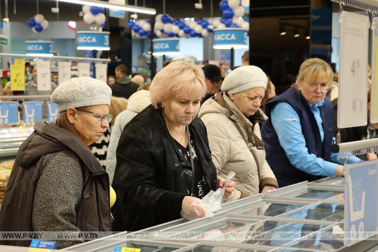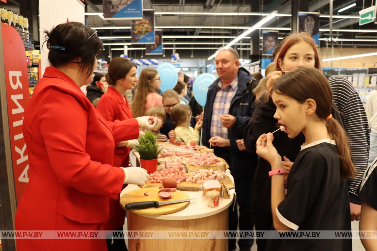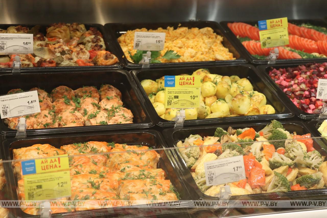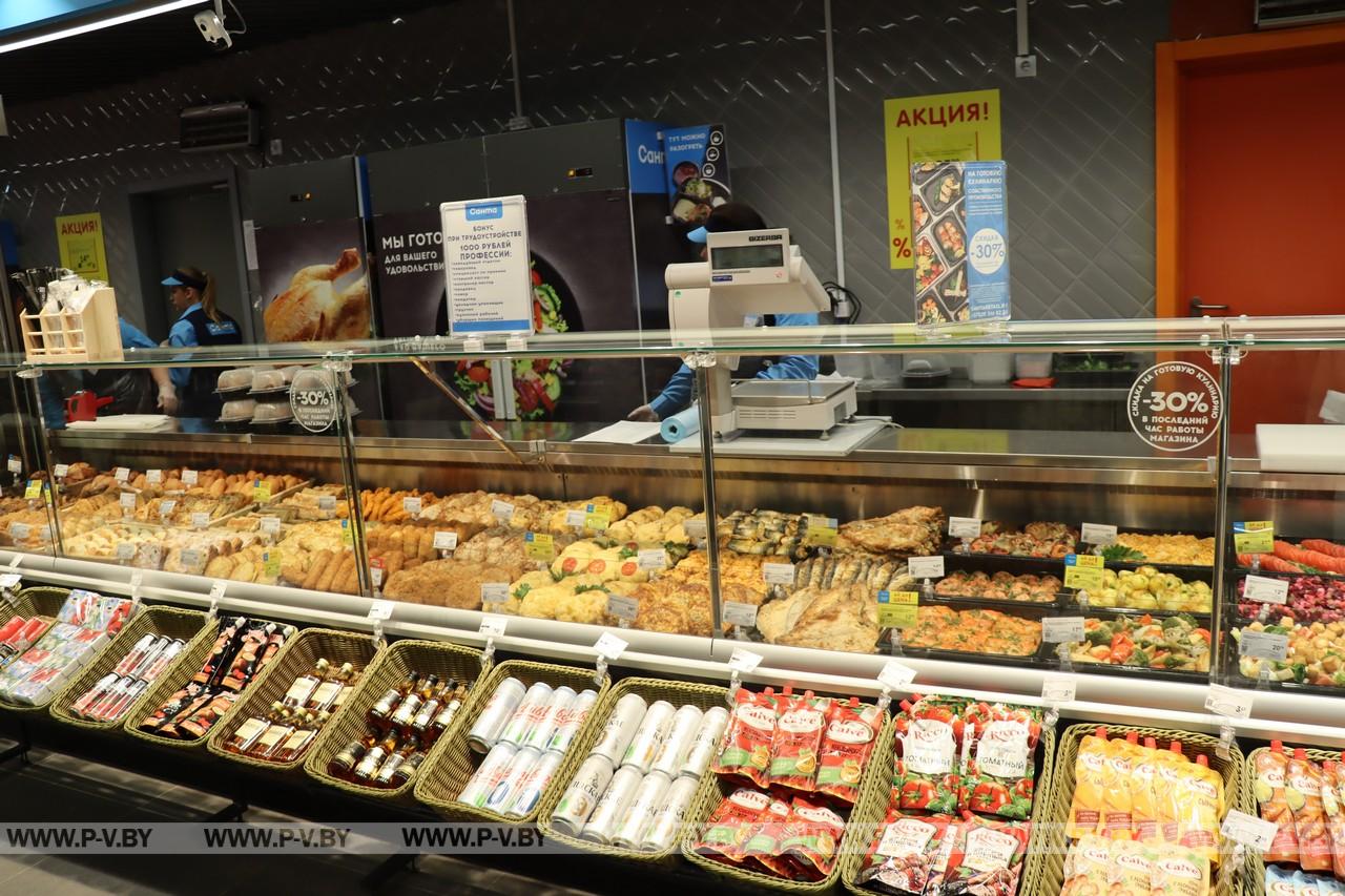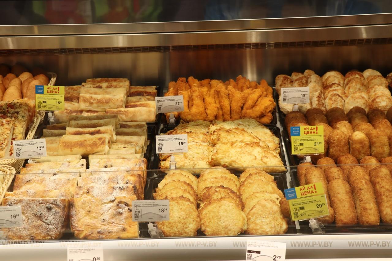 Все выглядит красиво и аппетитно, что сразу же хочется все продегустировать. Кстати, о дегустации. Кое-что из представленных в магазине товаров можно было попробовать бесплатно. Дегустацию продукции предлагали Пинский и Слонимский мясокомбинат, бренд компании «Инко-фуд» из Бреста «Белорусская Традиция», Пинский хлебозавод. Среди партнеров, принявших участие в открытии магазина, была также страховая компания «Белнефтестрах».