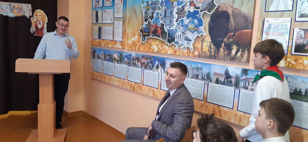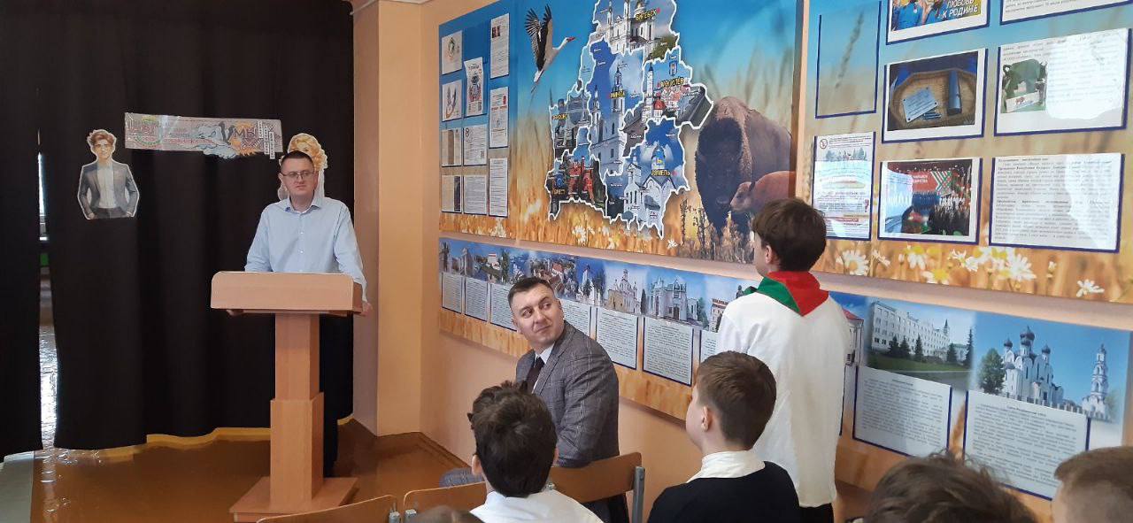 Гостем школы стал сотрудник научного отдела, заведующий лабораторией «Бизнес-центр» Полесского госуниверситета, автор и ведущий информационно-просветительского проекта «Время Пинщины» Дмитрий Кисель.