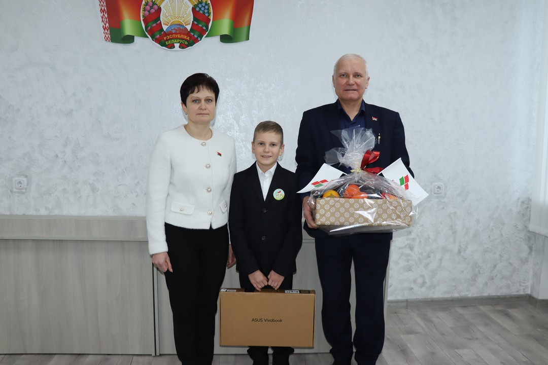 – Евгений – талантливый ребенок. Своим примером он показывает, как достигать своих целей, быть патриотом. Отрадно, что такие ребята растут в нашем районе, тем более в глубинке. Хотелось бы, чтобы их становилось еще больше. Думаю, этот подарок станет стимулом для дальнейшего участия Евгения в жизни своей школы, района. Родителям спасибо за воспитание достойного сына.