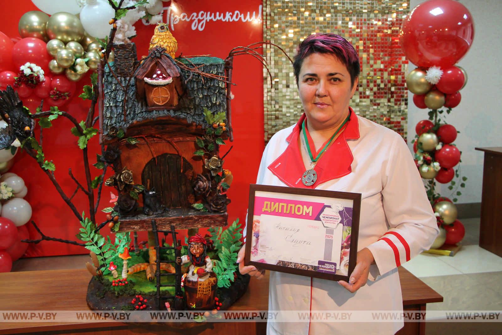 – После окончания Брестского государственного торгово-технологического колледжа пришла на хлебозавод кондитером. И вот уже более тридцати лет занимаюсь любимым делом. Заочно окончила Барановичский технологический колледж по квалификации «техник-технолог». За столько лет завод стал для меня вторым домом. В основном работаю на отделке кондитерских изделий. Часто украшаю их по наитию. И два одинаковых торта у меня просто не могут получиться, чем-то да будут отличаться. С мастикой работаю достаточно давно. В республиканском конкурсе участвую второй раз. Мне это интересно – соревноваться с такими же, как и я, кондитерами. К тому же это повышает уровень мастерства. Для меня это еще и опыт, новые знакомства и много положительных эмоций. Кстати, там было представлено 125 работ мастеров из Беларуси и России. На конкурс я изготовила избушку на курьих ножках по мотивам сказок. Трудилась две недели. Хочу отметить, что изделия из мастики съедобны и при правильном температурном режиме могут храниться до года. Но, как правило, такие работы предназначены больше не для еды, а для эстетики.