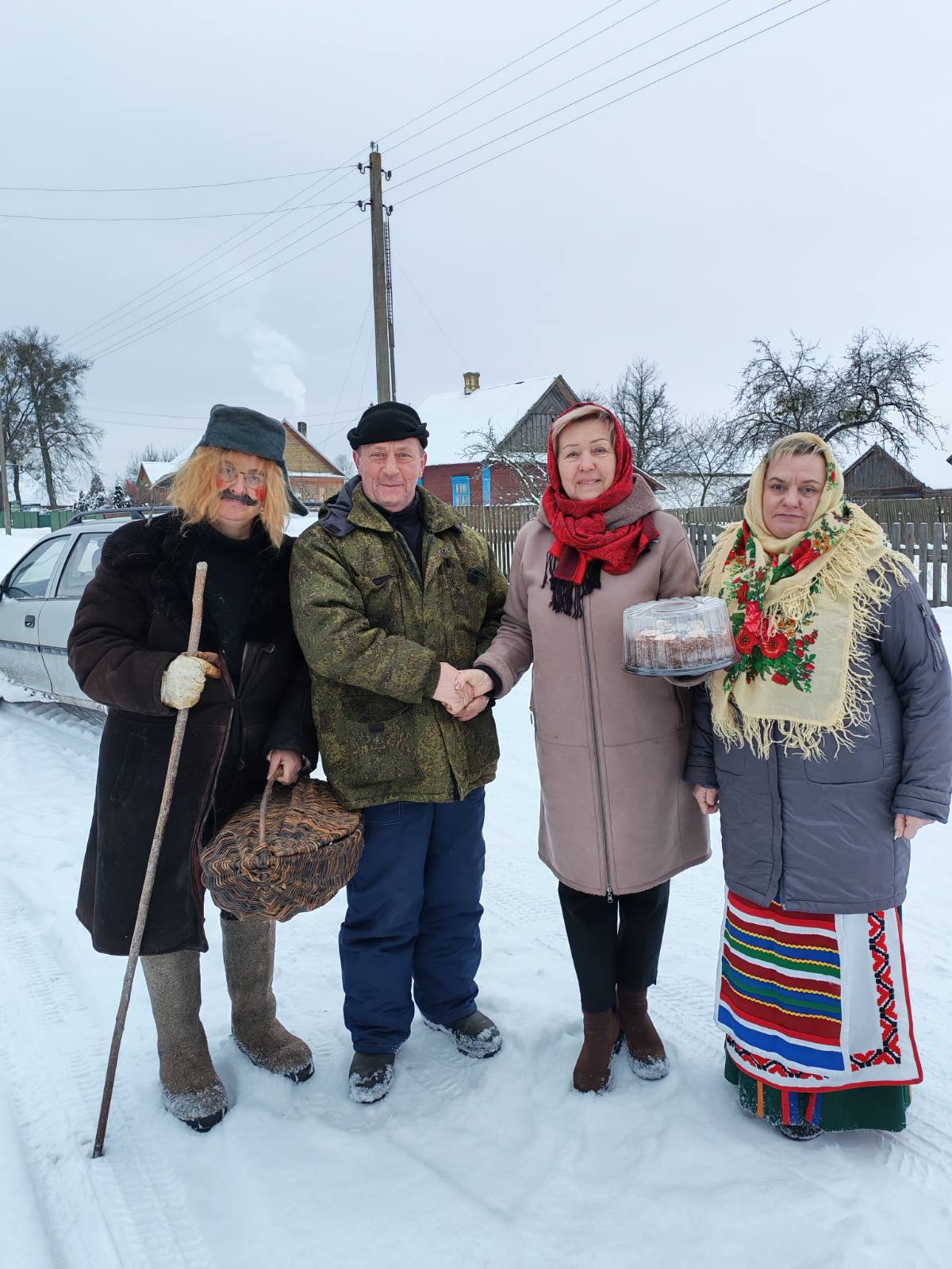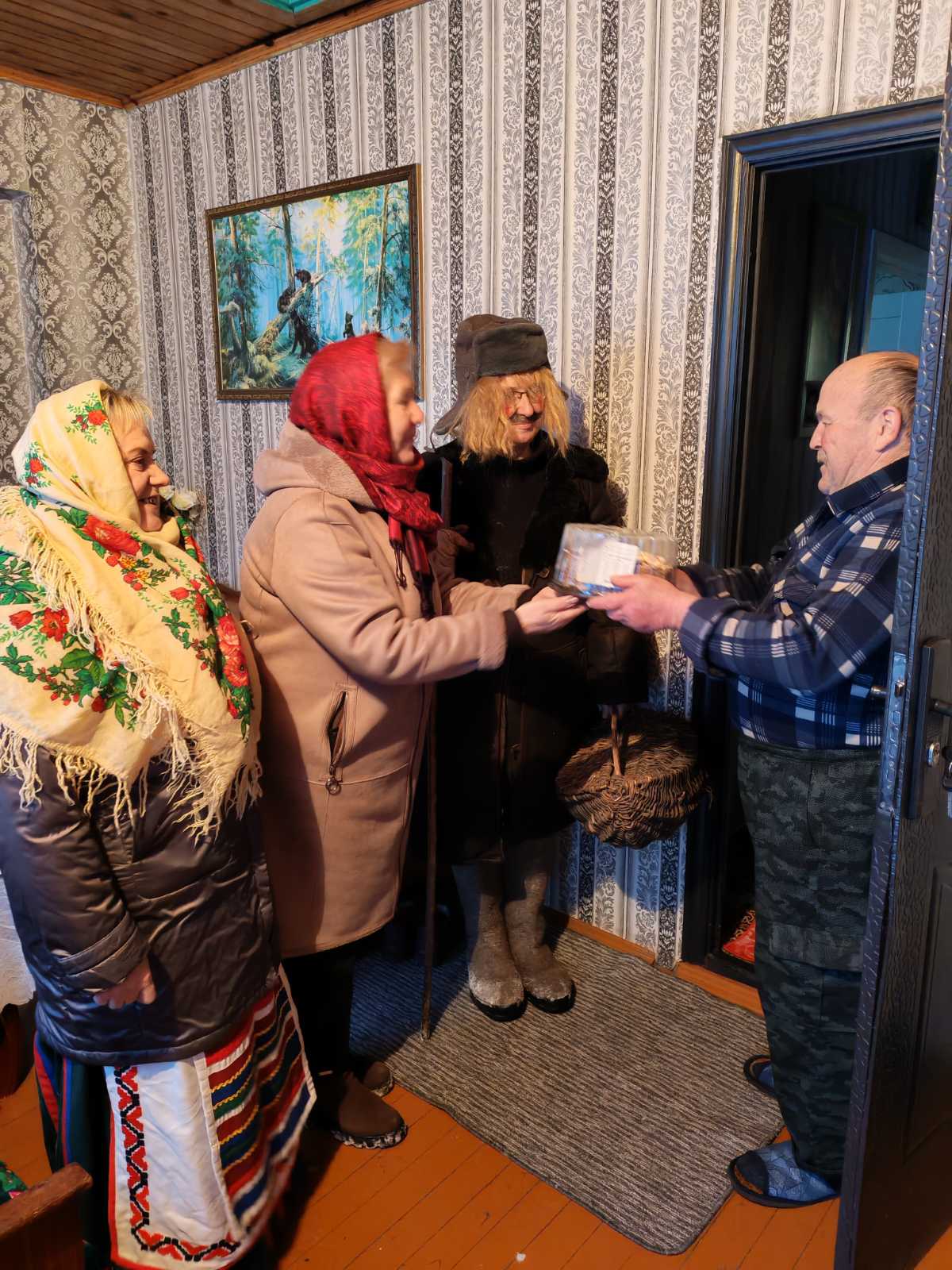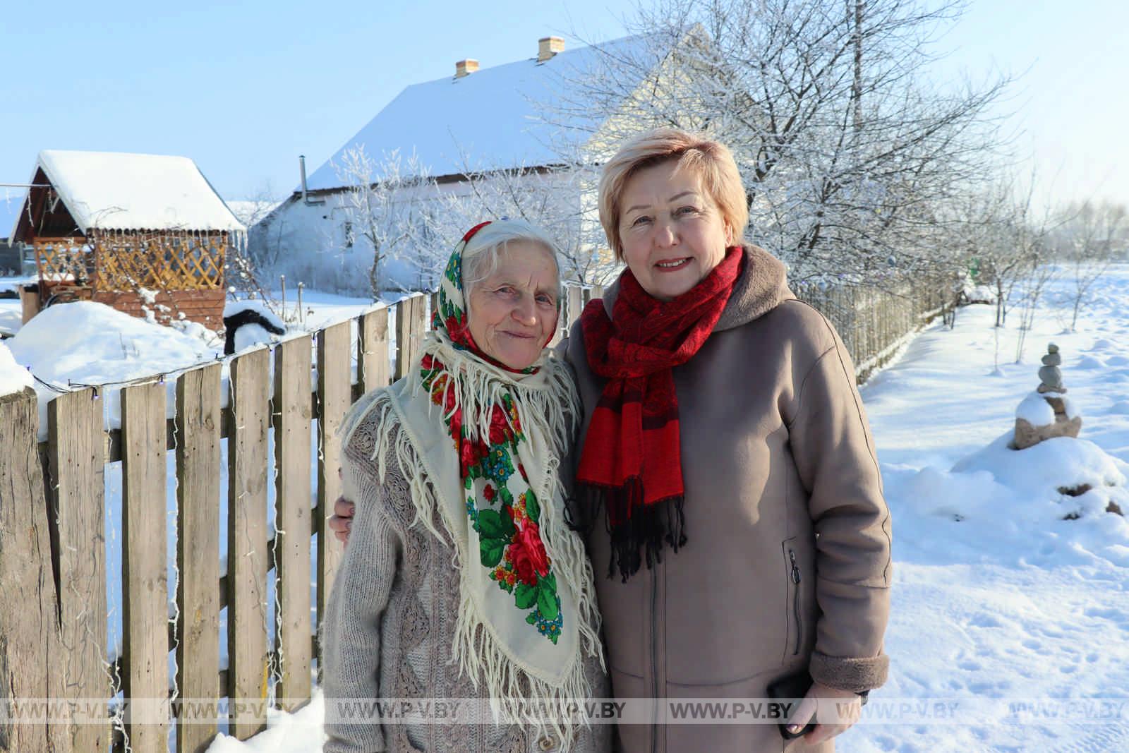 Мария Васильевна местная. И замуж вышла за односельчанина. В семье родилось трое детей – два сына и дочь. Теперь у женщины пять внуков и две правнучки. Всю жизнь она проработала в колхозе: сначала дояркой, потом лаборантом. 20 января исполнится 82 года, и ее жизнелюбию можно только позавидовать. В тот вечер, когда председатель сельисполкома с помощниками объезжала усадьбы сельчан с поздравлениями, Мария Васильевна не смогла усидеть дома и отправилась щедровать. Так что Тамара Вабищевич приехала к ней уже утром 14 января.